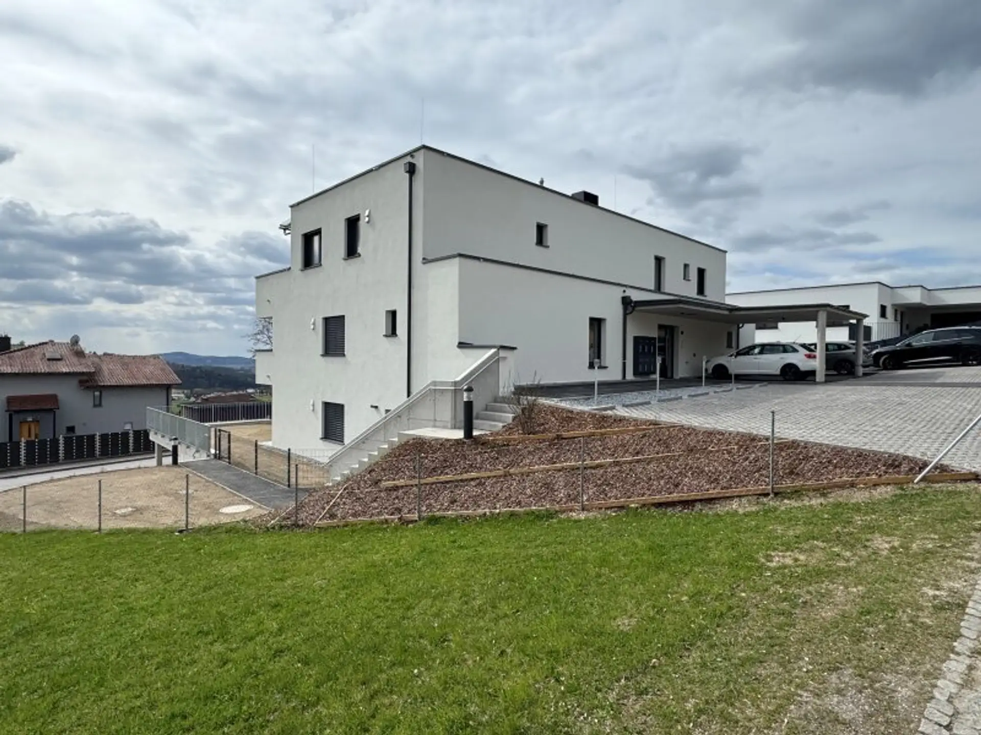 Hagenberg befindet sich rd. 20 km südlich der Bezirkshauptstadt Freistadt und nur rd. 25 km nordöstlich der Landeshauptstadt Linz, in einer aufstrebenden und sehr gut angebundenen Region (A 7, S 10, B 123, B 124, B 125). Der überregional bekannte Softwarepark Hagenberg ist nur ca. 0,9 km entfernt und beheimatet bereits zahlreiche Firmen, Ausbildungsprogramme und Forschungsinstitute. Geschäfte des täglichen Bedarfes und alle wichtigen Infrastruktureinrichtungen (Ärzte, Schulen, Kindergarten, Hort, Gemeindeamt, Apotheke etc.) befinden sich im Nahbereich. Eine Buseinstiegsstelle liegt vor dem Haus (mit spezieller Verbindung zur Johannes Keppler Universität in Linz/Urfahr). Der Bahnhof Pregarten, der in Zukunft auch als Endstation für die geplante Regio-Tram (Linz-Gallneukirchen-Pregarten) fungieren soll, ist nur 16 Gehminuten entfernt. In der direkten Umgebung befinden sich weitere Ein- und Mehrfamilienhäuser sowie Grünflächen.