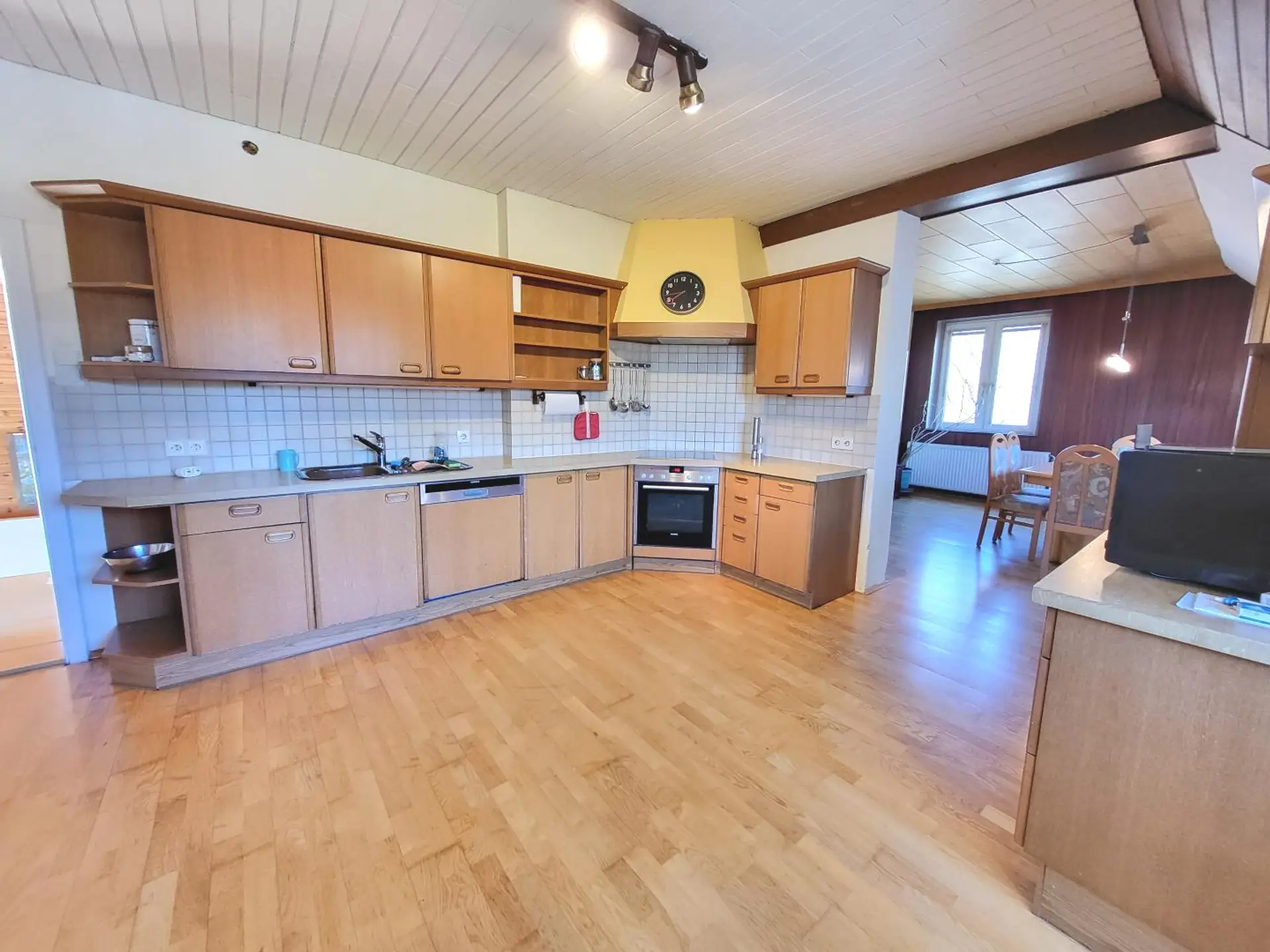 AUSSTATTUNG: Im Keller integrierte Garage / 1 freistehende Stahlbeton-Fertiggarage / Fassade mit Vollwärmeschutz (2010) / Außenmauern Hohlblockziegel 38 cm / Zentralheizung mit Öl (Öl-Brennwertkessel ca. 2009) / Geschossweise Heizungssteuerung inkl. Raumthermostate an den Heizkörpern / Kaminofen im Wohnzimmer sowie im Vorraum / Parkett- und Fliesenböden / Kunststofffenster mit 3-fach-Verglasung / Dacheindeckung mit Strangfalzziegel (1960er Jahre)