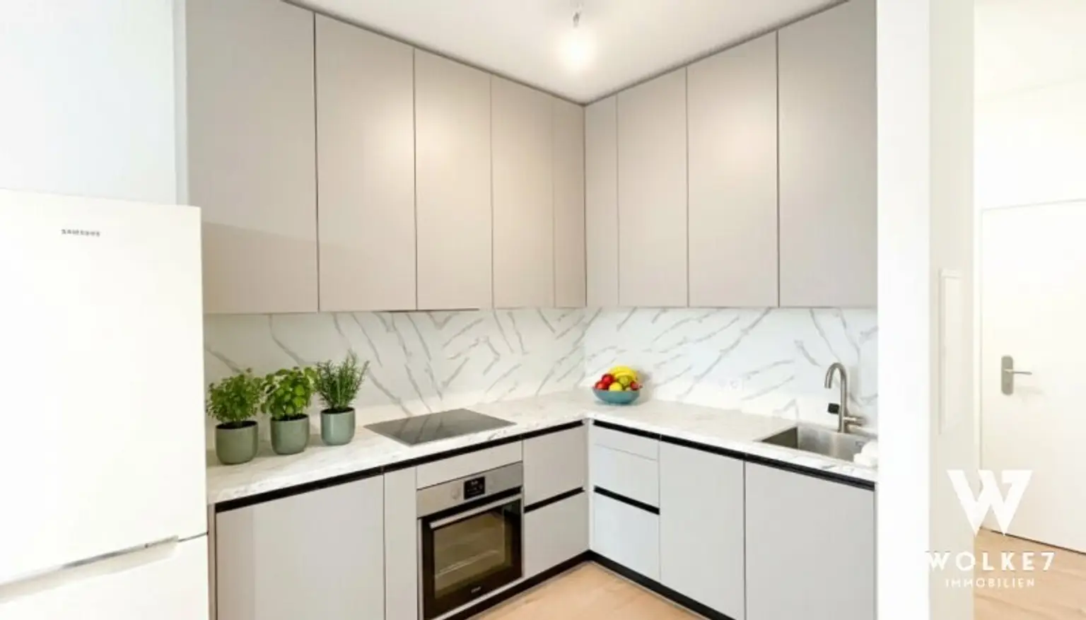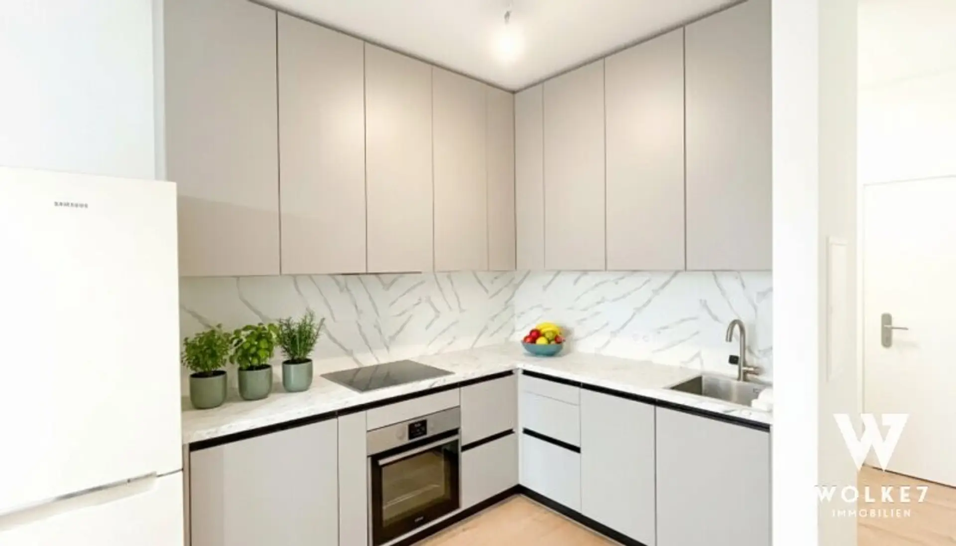 Die ca. 51 m² große Wohnung begeistert mit einer großzügigen Raumhöhe von ca. 2,80 m, lichtdurchfluteten Räumen und einer traumhaften Loggia mit ca. 5 m², inklusive Stromanschluss und Beleuchtung. Das moderne Heiz- und Kühlsystem mit Fußbodenheizung, Deckenheizung und Deckenkühlung sorgt das ganze Jahr über für ein angenehmes Raumklima, ergänzt durch eine automatische Feuchtigkeitsregelung mittels Hygrostatsteuerung. Ein besonderes Highlight der Wohnanlage sind der hauseigene Fitnessraum sowie die Sauna, die echtes Premium-Wohnen ermöglichen. Umgeben von großzügigen Grünflächen genießen Sie hier Ruhe und Erholung und das bei perfekter U-Bahn-Anbindung in Stadtnähe.