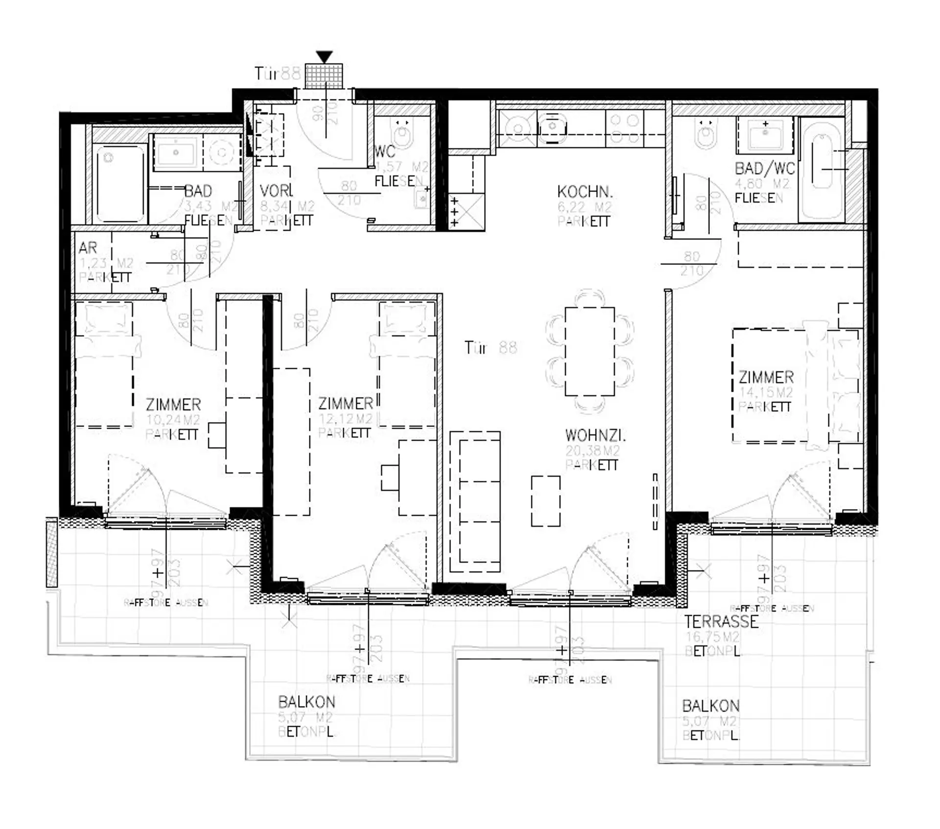 Ausstattung: Boden Fahrstuhl Abstellraum Fernwärme Zentralheizung Balkon Terrasse