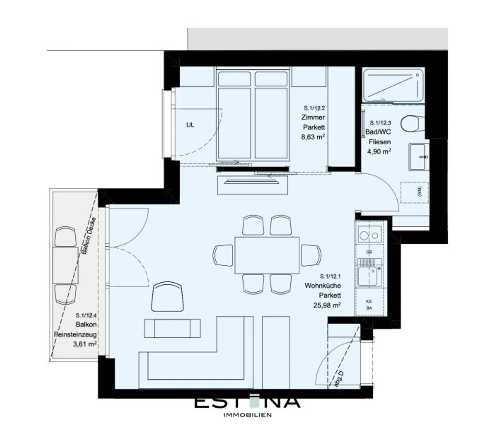 - Wohnküche mit Zugang zum Balkon