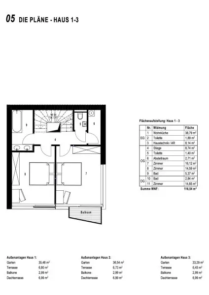 Das Haus bietet mit seiner großzügigen Wohnfläche und den zahlreichen Freiflächen Platz für modernes und komfortables Wohnen: