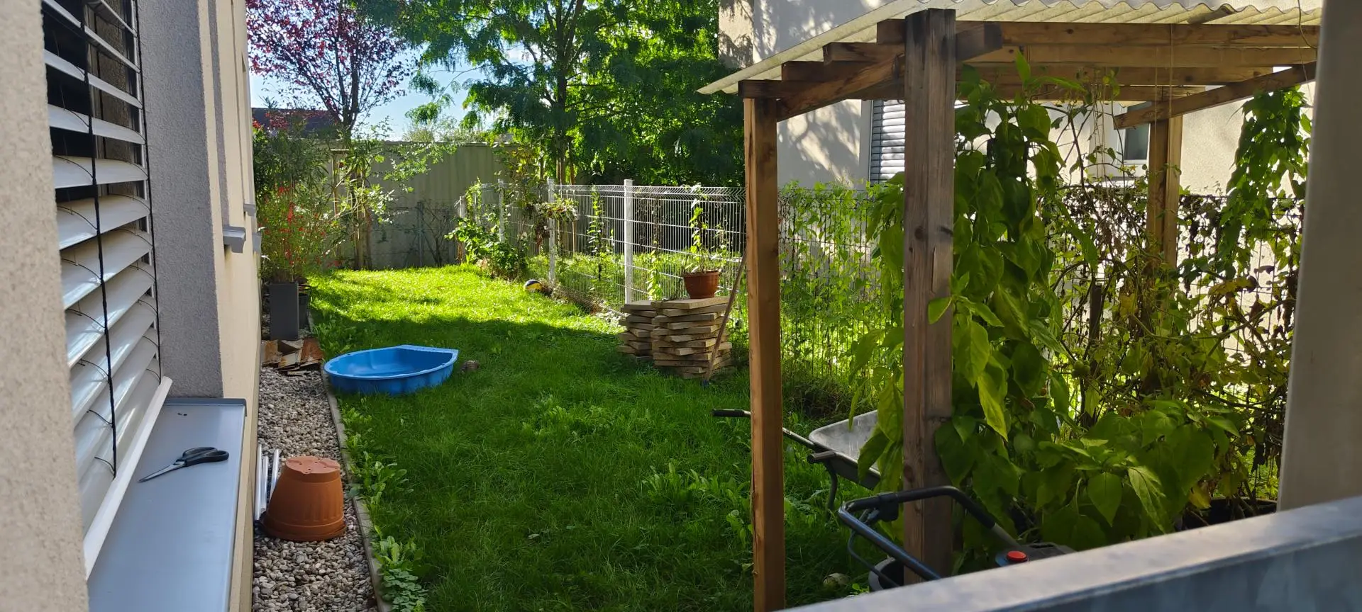 Auf der ca. 14m² großen, sonnigen und nach Süden ausgerichteten Terrasse mit ca. 40m² Garten, lässt sich der Alltagsstress in der Nachmittagssonne schnell vergessen!