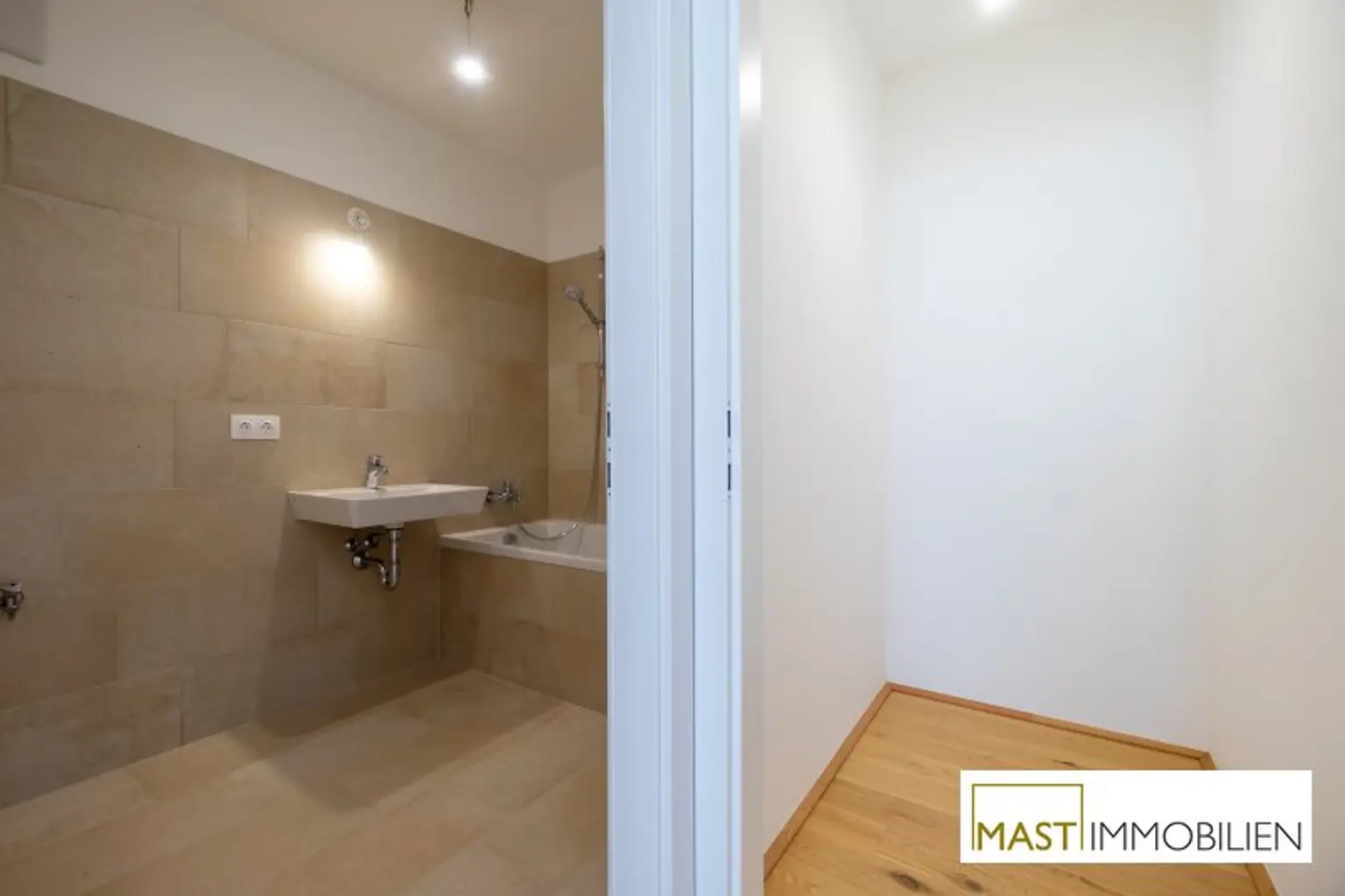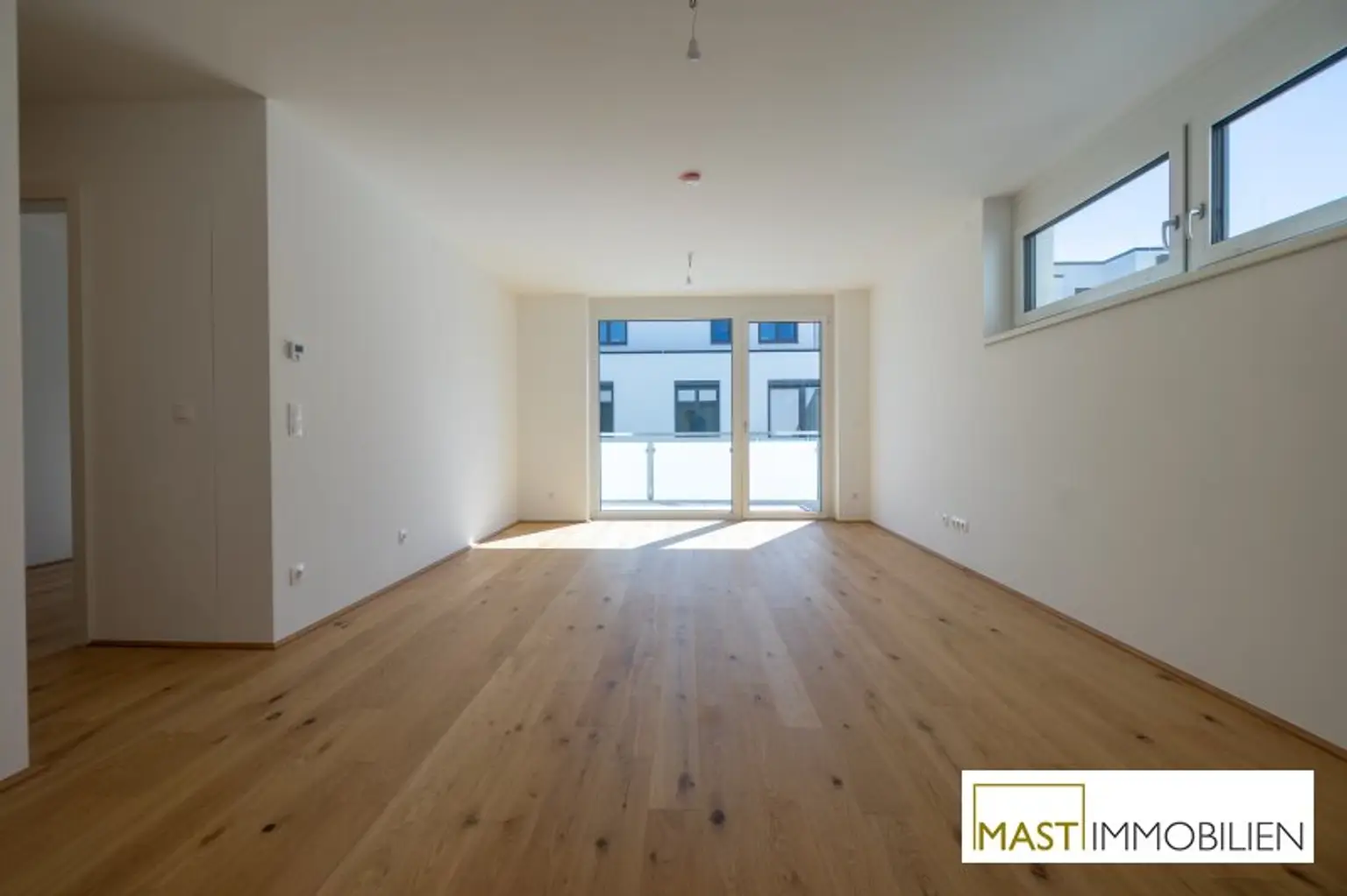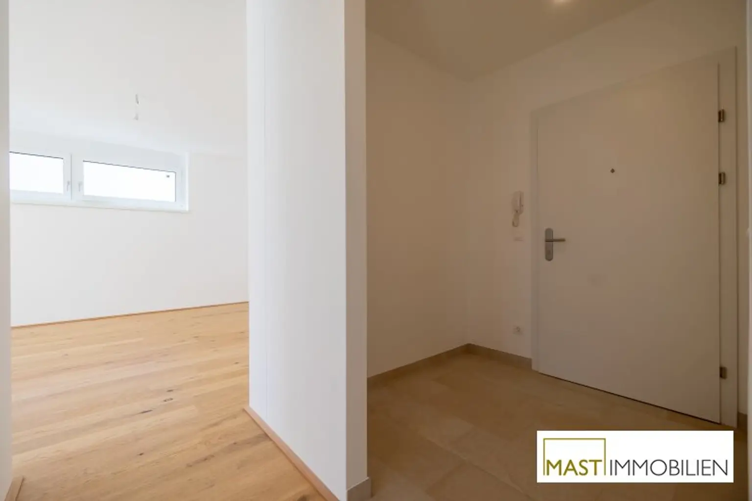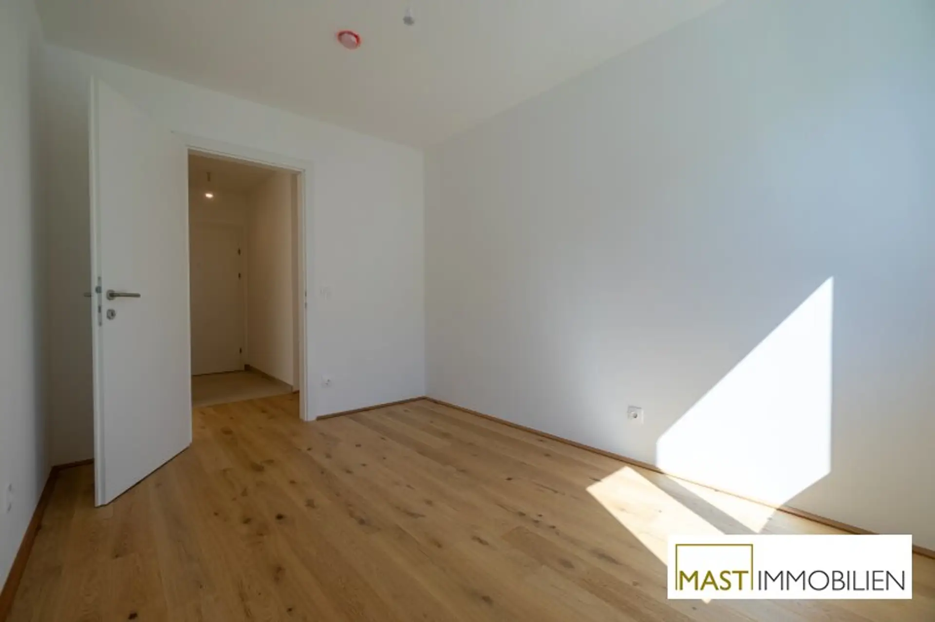 Eine wunderschön aufgeteilte 3 Zimmer Balkonwohnung in Ausmaß von ca. 63 m² in südlicher Ausrichtung. Nach Eintritt in die Wohnung gelangen Sie ins Vorzimmer mit ca. 7,85 m². Das ca. 27 m² große Wohnzimmer bietet einen direkten Zugang auf den Balkon im Ausmaß von knapp 9,50 m². Das Schlafzimmer ist ca. 10,50 m² groß und bieten daher ausreichend Platz für Ihre Möbel. Auch das Kinderzimmer mit ca. 10,40 m² bietet ausreichend Platz. Das modern & exklusiv gestaltete Badezimmer wird mit einer Wanne, WM-Anschluss und Waschbecken ausgestattet. Selbstverständlich ist das WC inkl. Handwaschbecken, separat begehbar. Der Abstellraum umfasst ca. 1,50 m².