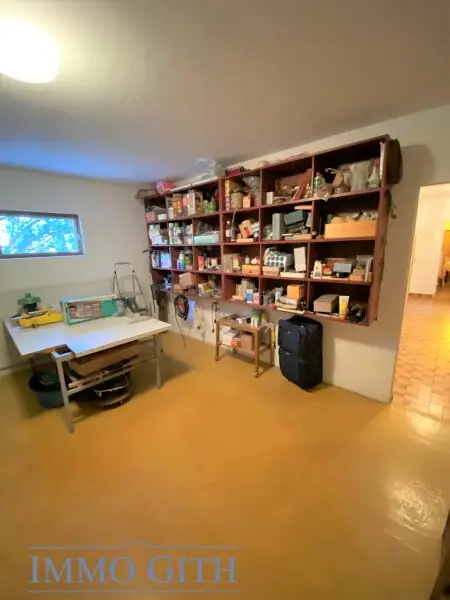 Im Wohnkeller (ca. 173 m²) befinden sich 1 Stube und 1 Sauna mit Dusche, 1 Heizraum und 4 Kellerräume sowie 1 geräumige Garage.