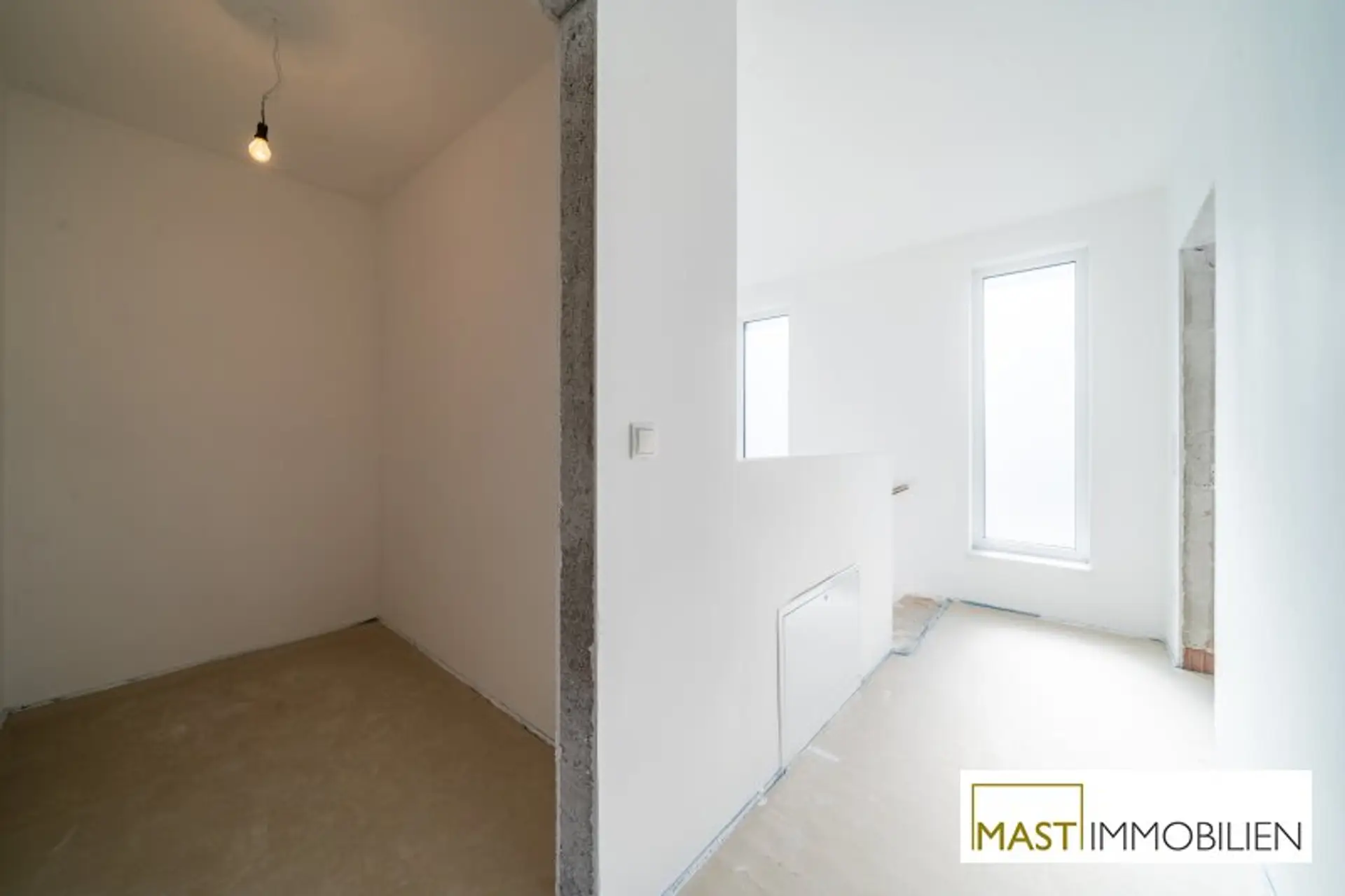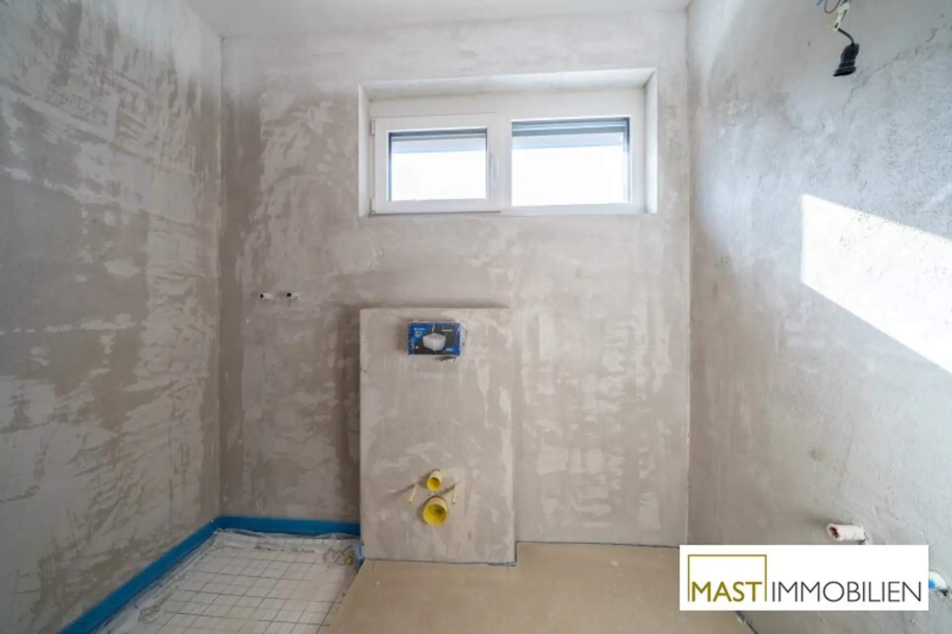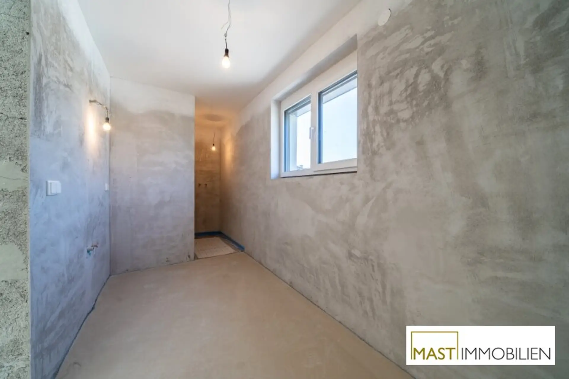 Aktuell befindet sich das Haus in belagstertigem Zustand. Das bedeutet, dass die Boden- und Wandbeläge, die Sanitäreinrichtungen sowie die Türen noch nicht verbaut sind.