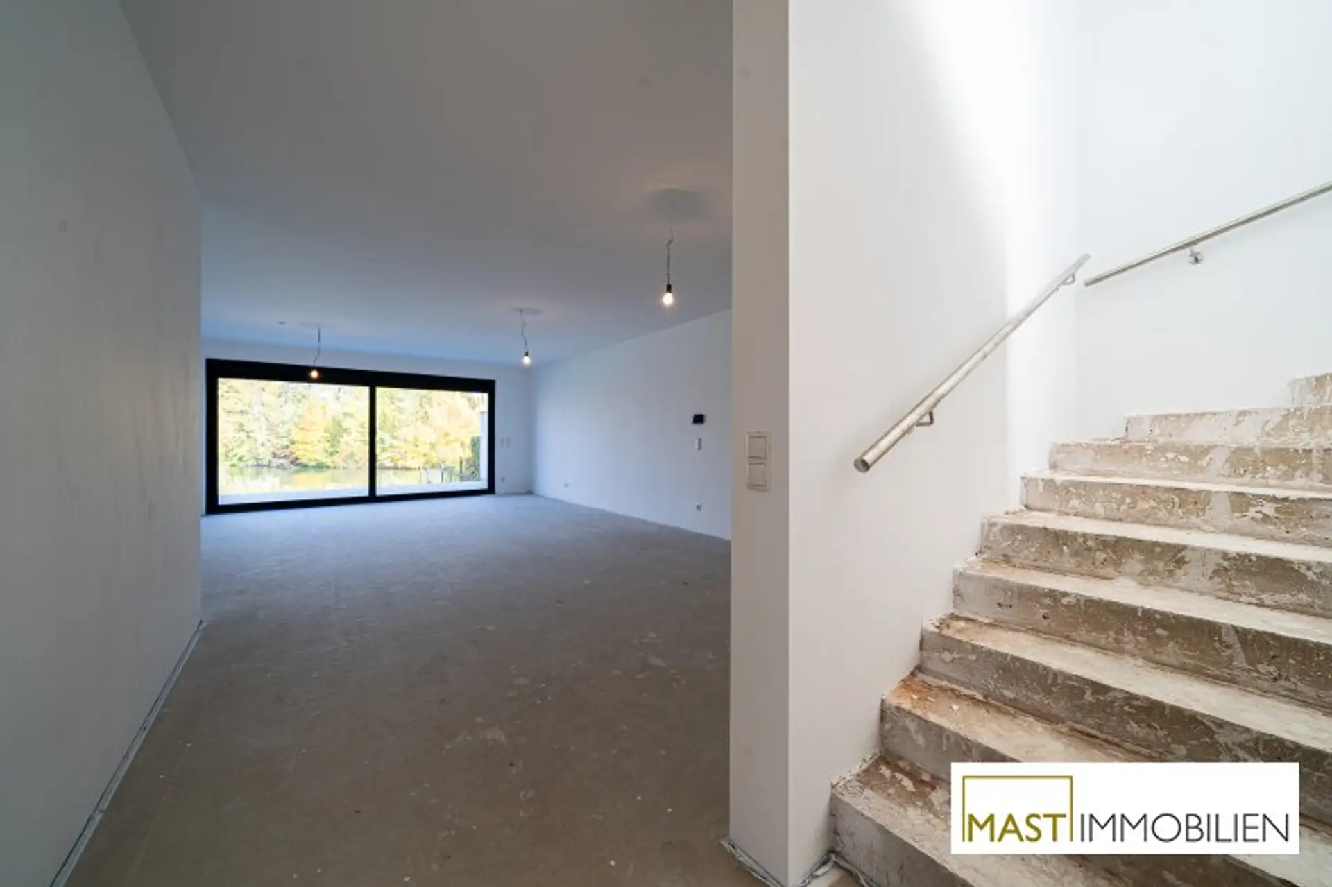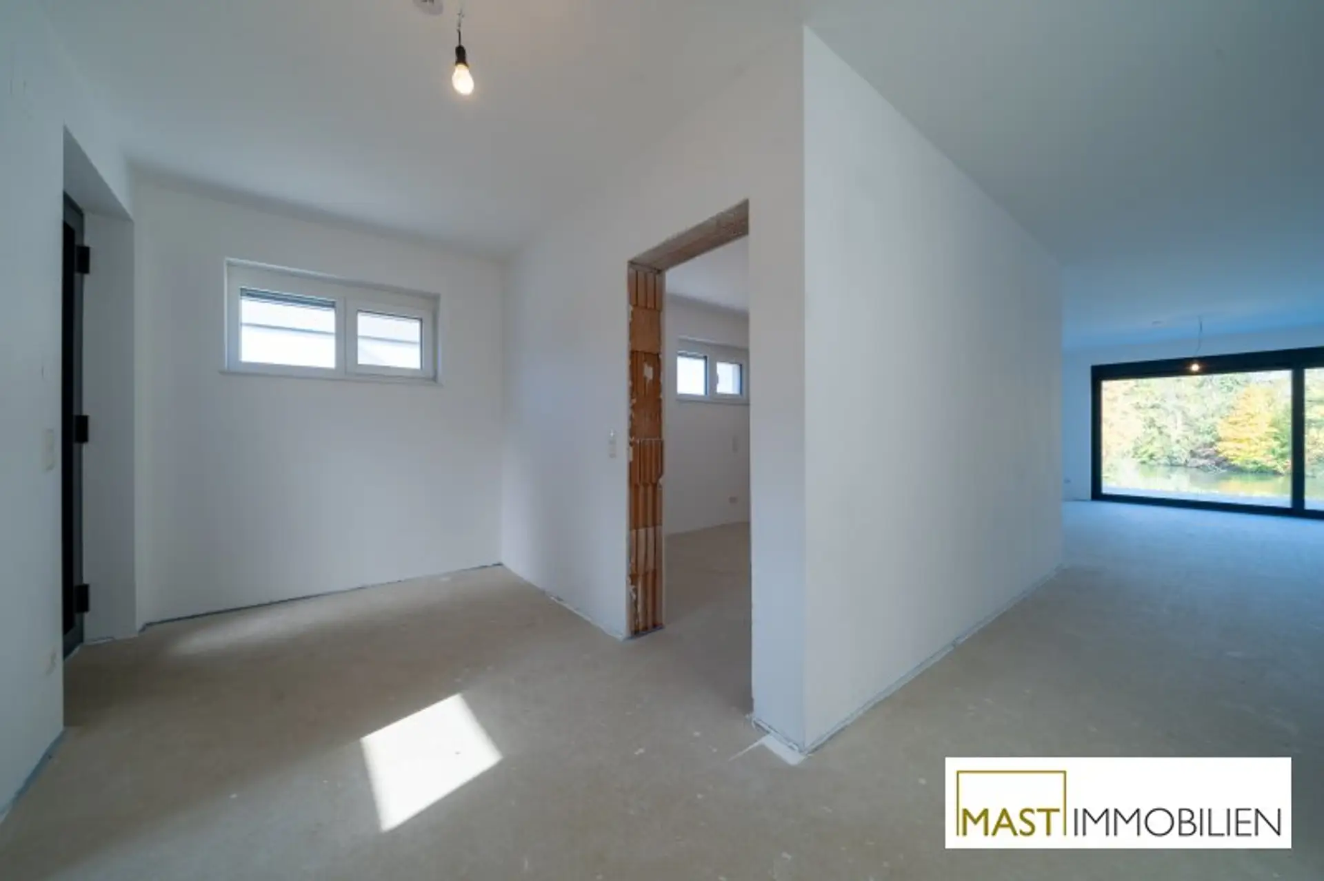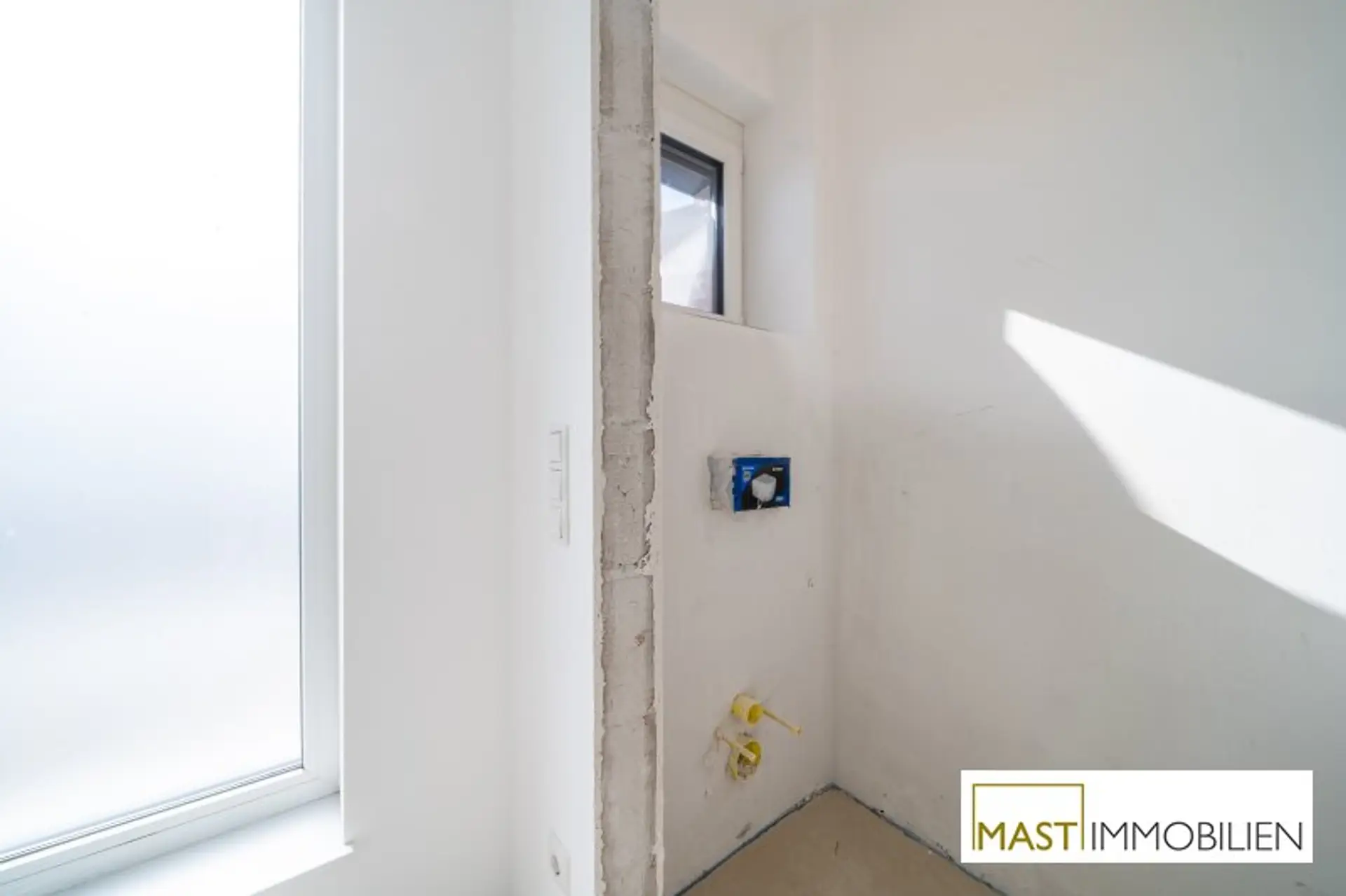 Aktuell befindet sich das Haus in belagstertigem Zustand. Das bedeutet, dass die Boden- und Wandbeläge, die Sanitäreinrichtungen sowie die Türen noch nicht verbaut sind.