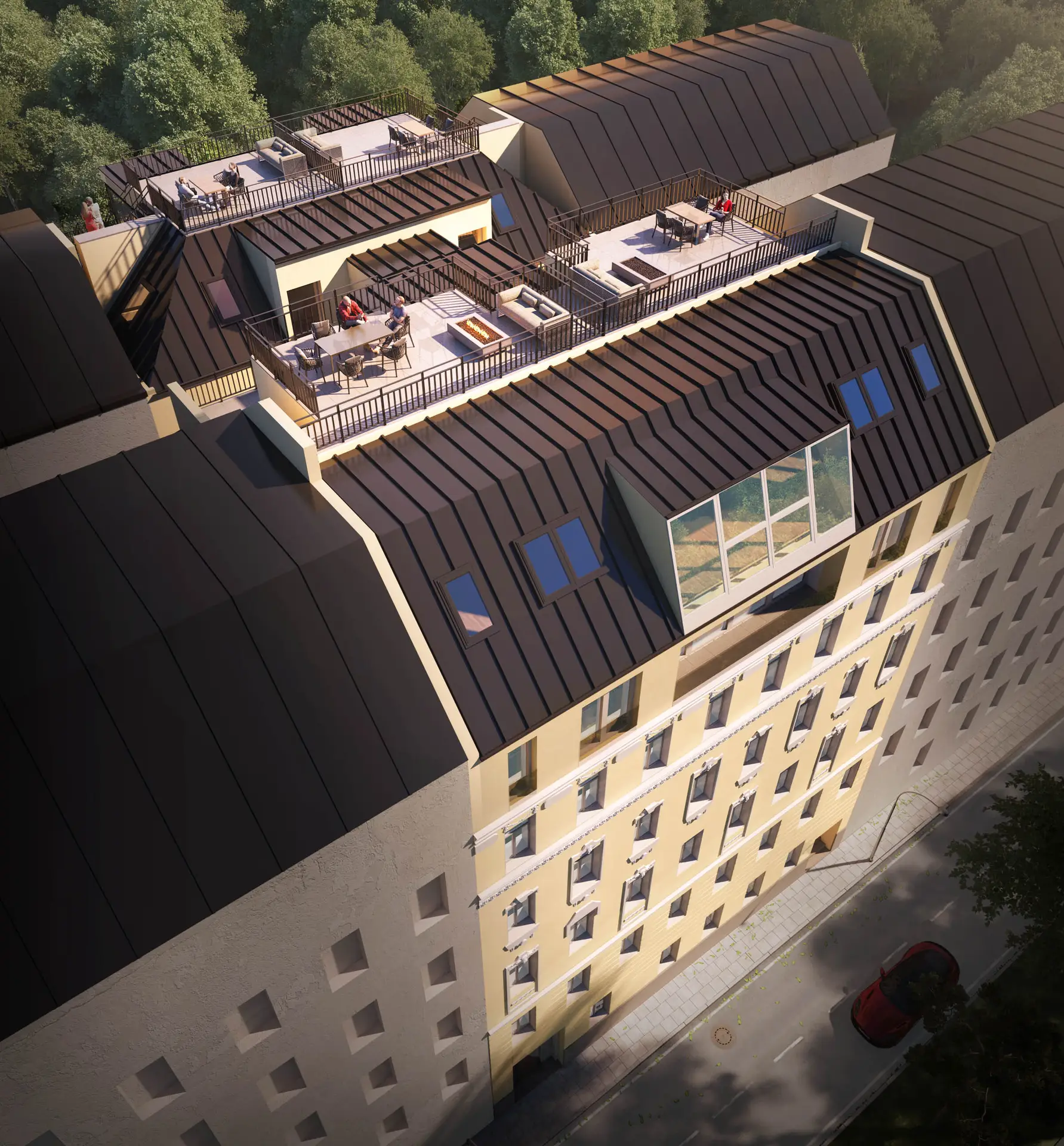 ➤ 7 exklusive Dachgeschosswohnungen mit großzügigen Terrassen, die einen traumhaften Blick über die Dächer Wiens eröffnen.