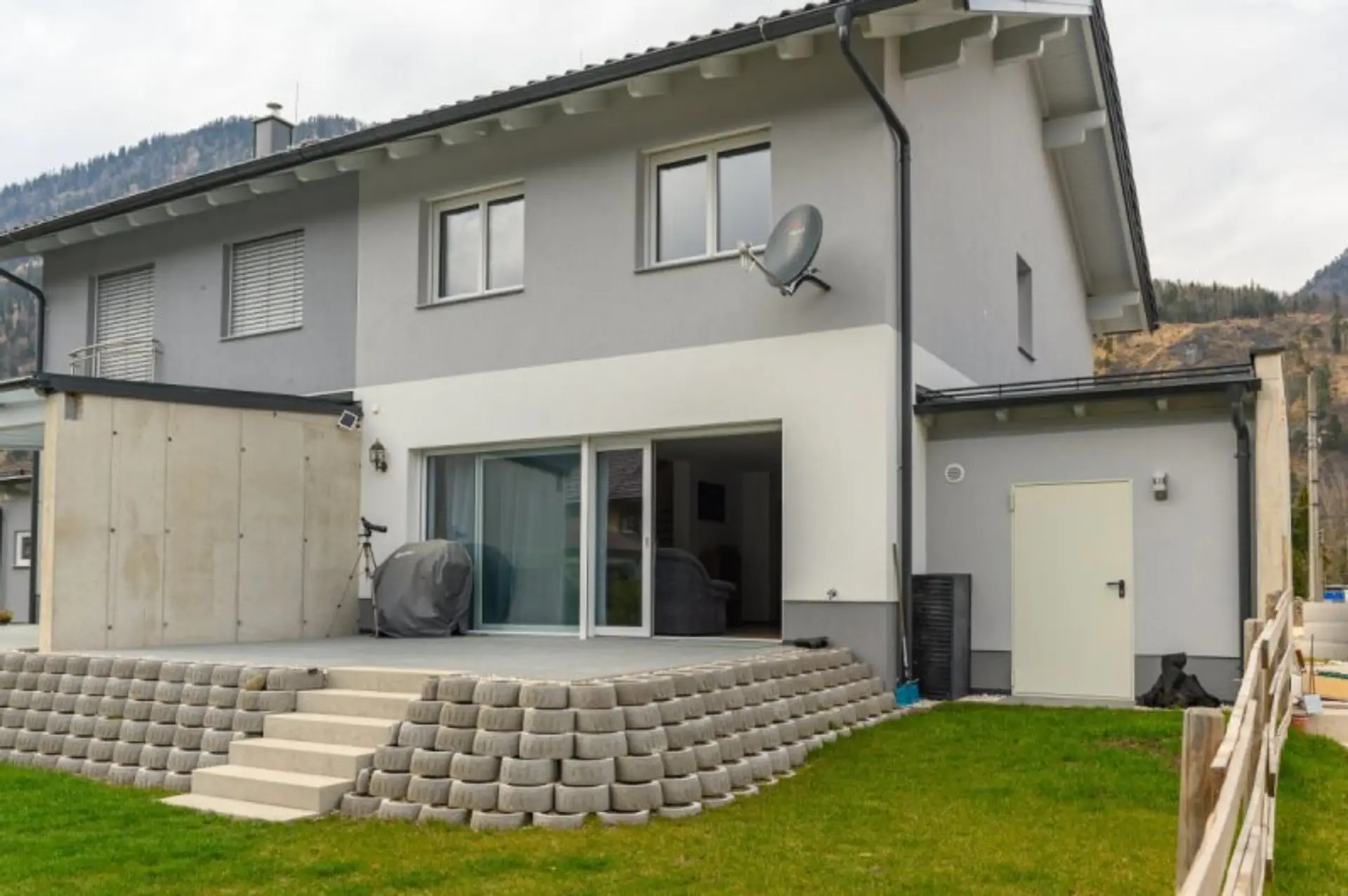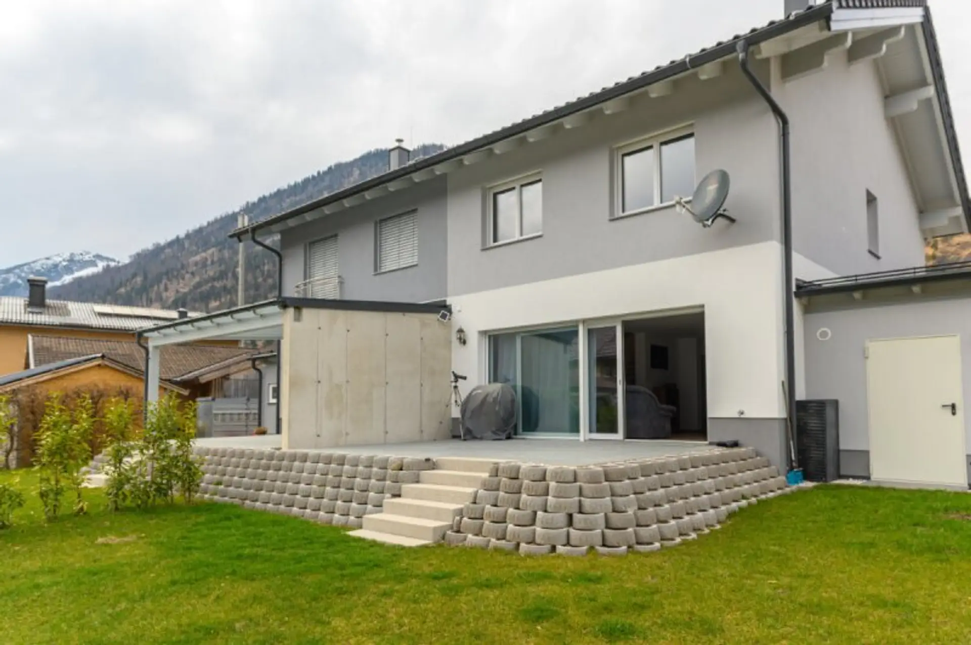 * Terrasse und Garten mit Bergblick