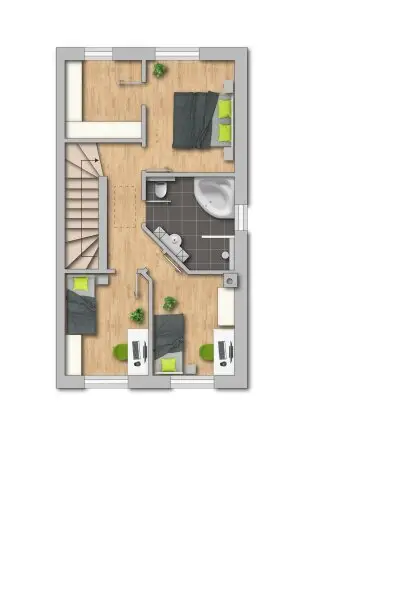 Im Obergeschoss befinden sich ein geräumiges Schlafzimmer mit angeschlossenem Schrankraum, ein Kinderzimmer sowie ein weiteres flexibel nutzbares Zimmer, das sich perfekt als Büro oder zusätzliches Kinderzimmer eignet. Das großzügige Badezimmer mit Tageslicht bietet eine Eckbadewanne, eine bodengleiche Dusche sowie ein weiteres WC und schafft damit Ihre persönliche Wohlfühloase. Zusätzlichen Stauraum bietet der Dachboden.