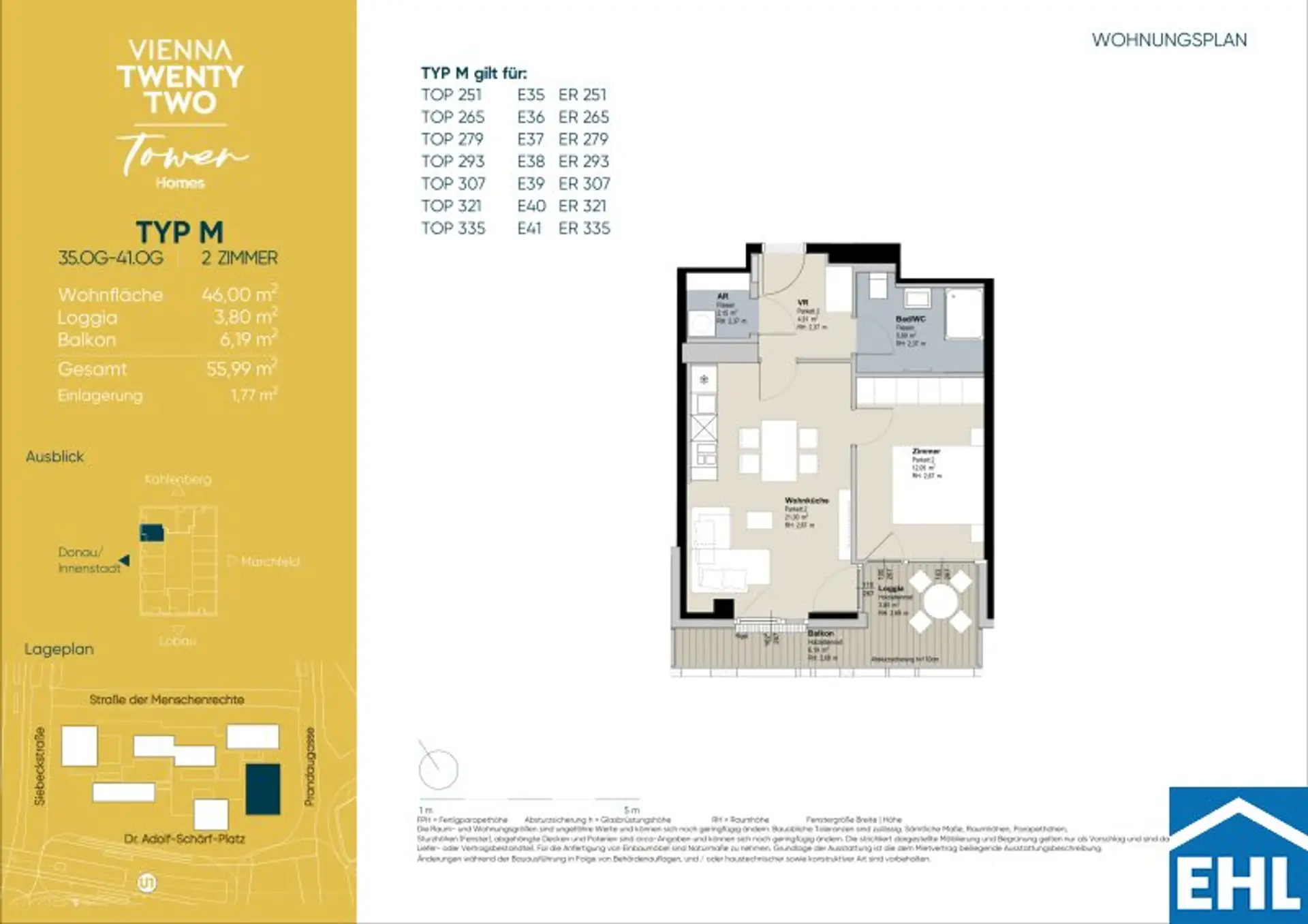 In einzigartiger Lage, direkt bei der U1-Station _Kagran_ und vis-à-vis vom Donau Zentrum, entsteht ein exklusiver, ca. 155m hoher Wohnturm mit 45 Etagen. Die insgesamt 347 Mietwohnungen bieten einen vielfältigen Wohnungsmix: von smart geschnittenen 1,5-Zimmer-Apartments ab ca. 38 m² über komfortable 2-Zimmer-Wohnungen bis hin zu großzügigen 3- und 4-Zimmerwohnungen mit bis zu ca. 80 m².