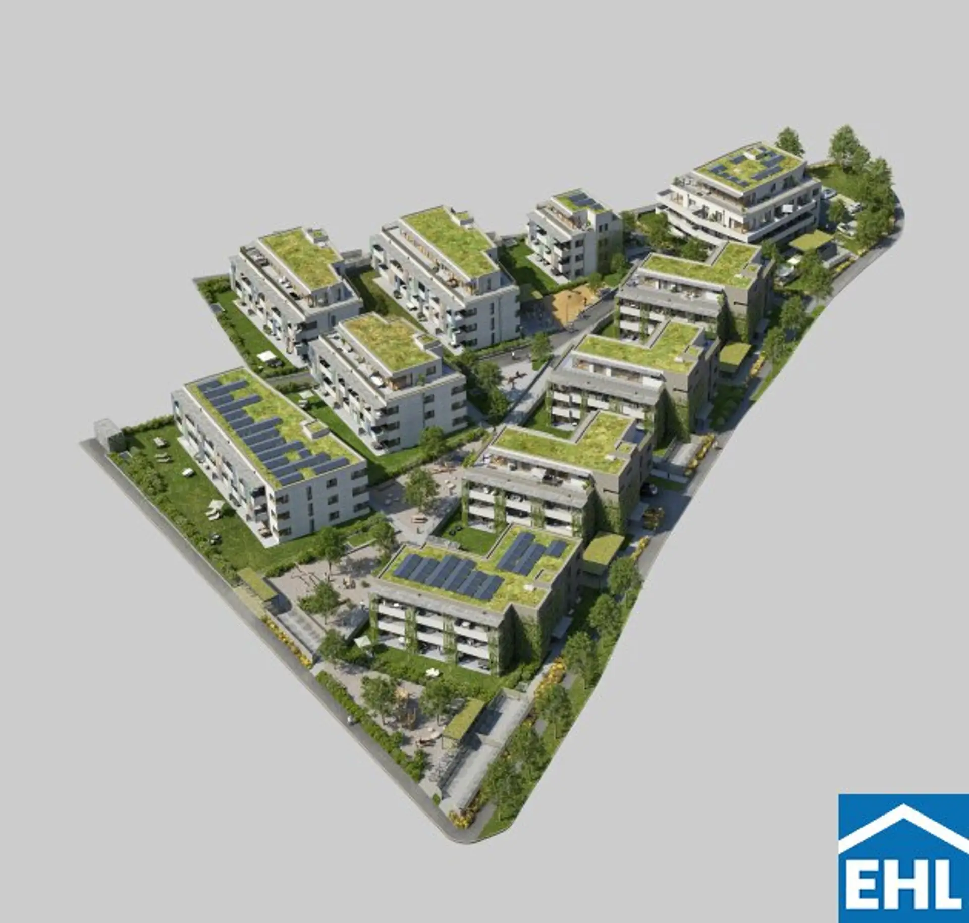 Zehn moderne Baukörper mit drei bis vier Geschossen sind über ein barrierefreies, halböffentliches Wegesystem miteinander verbunden und schaffen ein offenes, nachbarschaftliches Wohnumfeld. Insgesamt entstehen 116 schlüsselfertige Wohnungen mit 1 bis 5 Zimmern, ergänzt durch private Eigengärten, Balkone oder Terrassen.
