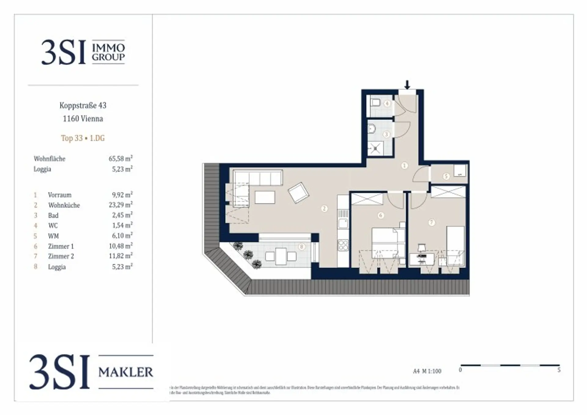 Im 1. Dachgeschoss der Koppstraße 43 präsentiert sich diese stilvolle 3 Zimmer Wohnung mit rund 65,6 m² Wohnfläche sowie einer Loggia von 5,2 m². Eine durchdachte Raumaufteilung, edle Materialien und modernste Technik schaffen ein Wohnambiente, das Komfort und Eleganz perfekt verbindet.