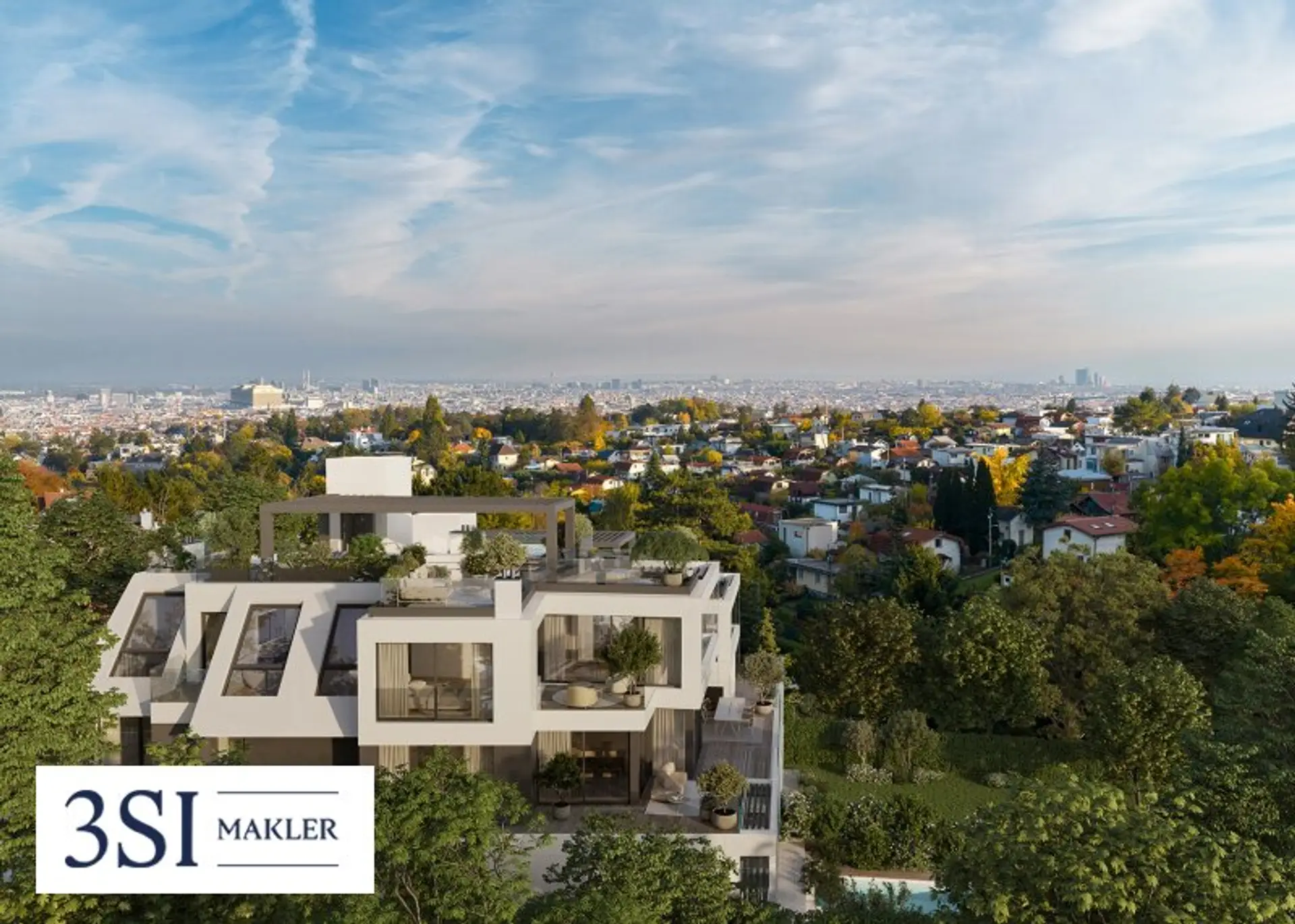 Hoch über Wien, in einer der begehrtesten Höhenlagen der Stadt, entsteht mit THE SUPERIOR eine außergewöhnliche Interpretation der klassischen Hangvilla. Straßenseitig zurückhaltend und präzise in die kleinteilige Umgebung eingefügt, zeigen sich talseitig zwei großzügige, elegant gestaffelte Baukörper mit weitem Blick über die Skyline und die umliegenden Hügel. Diese architektonische Dualität aus Diskretion und Großzügigkeit verleiht dem Projekt seine besondere Spannung.