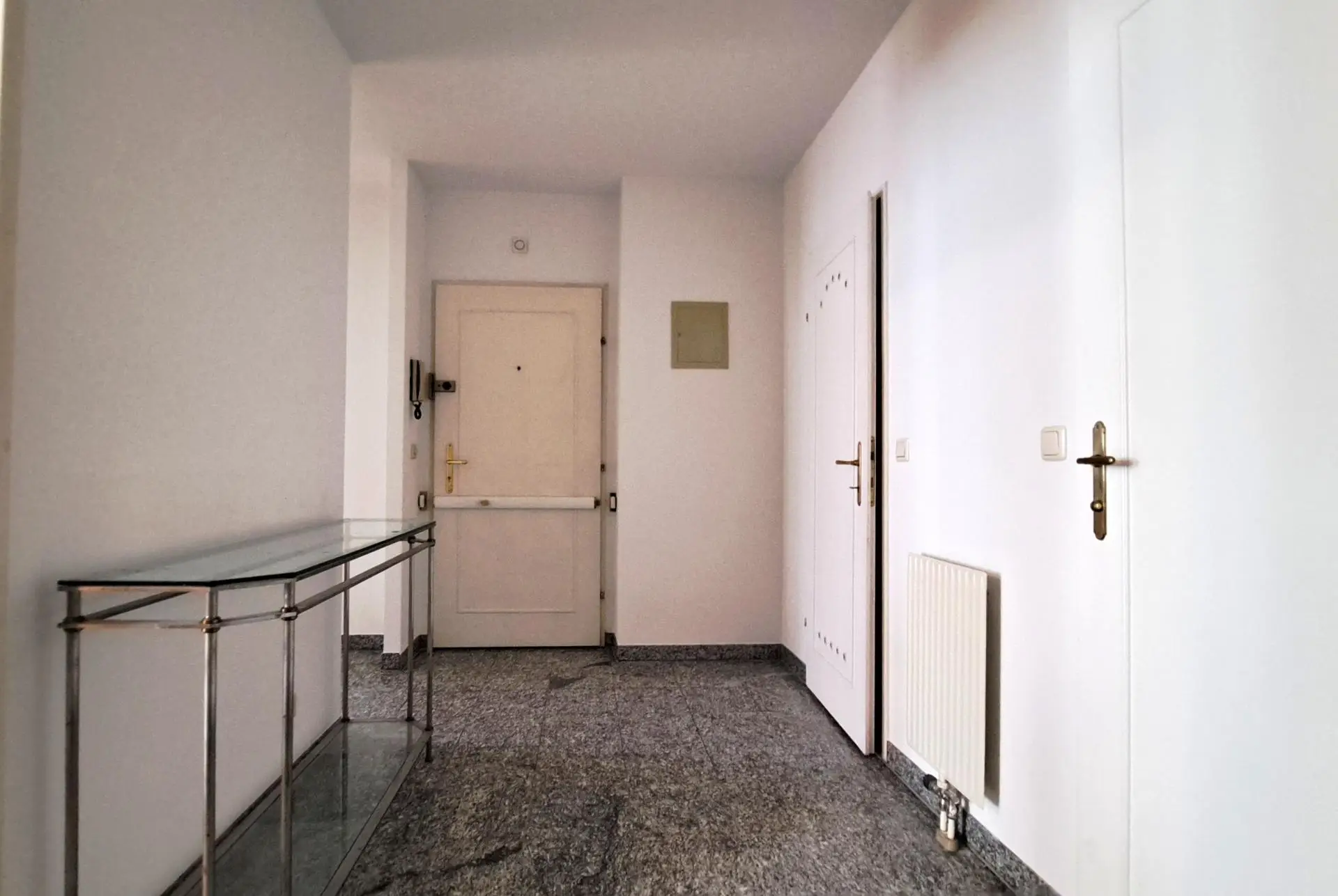 Beim Betreten empfängt Sie ein zentraler Vorraum, von dem aus alle Räume bequem zugänglich sind: das helle Wohnzimmer mit integrierter, vollständig möblierter Küche, ein großzügiges Badezimmer mit Badewanne und Waschmaschinenanschluss, das separate WC sowie ein praktischer Abstellraum.
