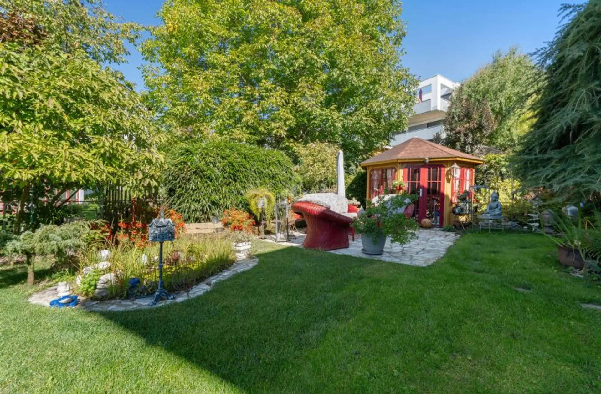 Der Garten bietet zahlreiche liebevoll gestaltete Elemente: Ein eleganter Pavillon schafft einen geschützten Ort zum Ausruhen oder Lesen, während der aufwendig angelegte japanische Gartenplatz mit einem kleinen Bach Ruhe und Harmonie ausstrahlt. Die Gartenanlage mit wunderschöner Bepflanzung wird durch einen „Naschgarten“ ergänzt, der mit Beerensträuchern, Birnen-, Apfel- und Kiwipflanzen zum Ernten und Genießen einlädt.
