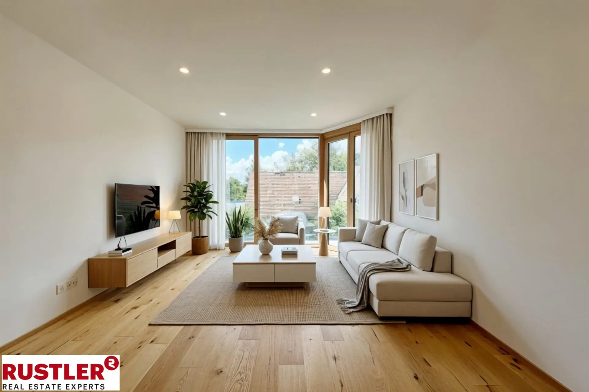 Diese 2-geschossige Maisonette bietet ca. 118 m² Wohnfläche, Terrassen auf beiden Seiten und eine helle, offene Raumgestaltung mit Ost-West-Ausrichtung. Der freie Ausblick auf Perchtoldsdorf schafft ein besonderes Wohnambiente zu jeder Tageszeit.