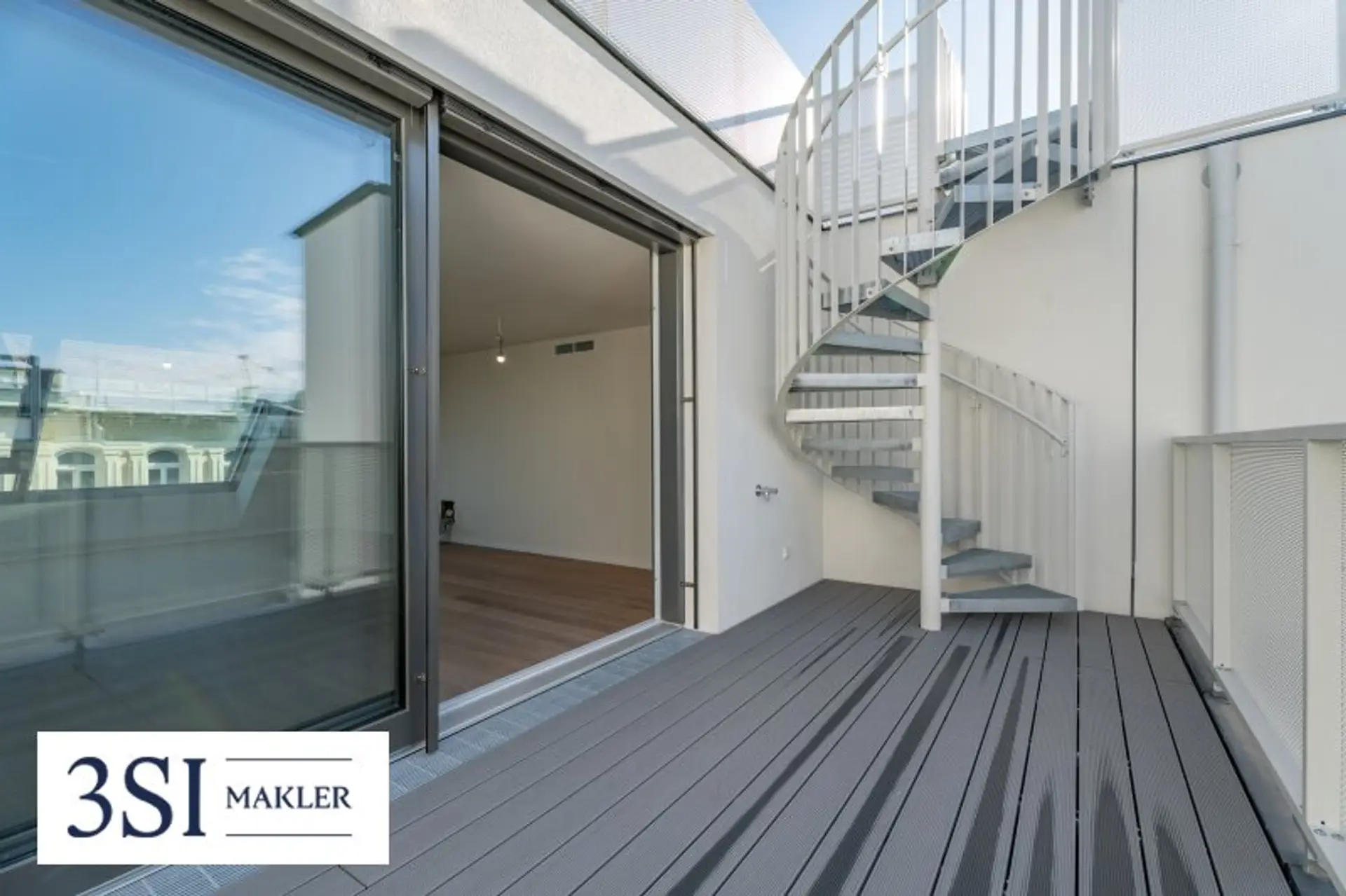 * Private Dachterrasse (ca. 55 m²) – über eine elegante Wendeltreppe erreichbar