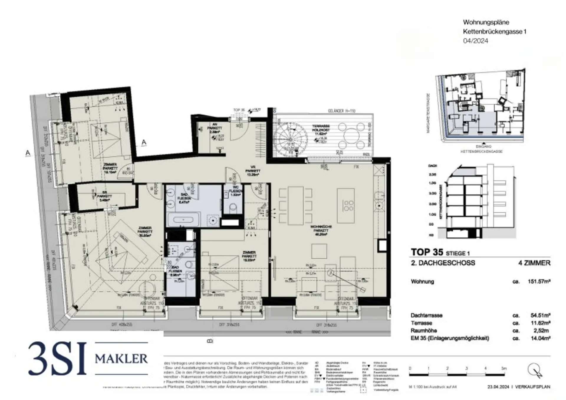 Die exklusive 4-Zimmer-Dachgeschosswohnung beeindruckt mit einer Wohnfläche von ca. 152 m², einer Terrasse von ca. 12 m² sowie einer privaten Dachterrasse mit rund 55 m². Helle Räume, eine durchdachte Aufteilung und hochwertige Ausstattung schaffen ein außergewöhnliches Wohnambiente auf zwei Ebenen.