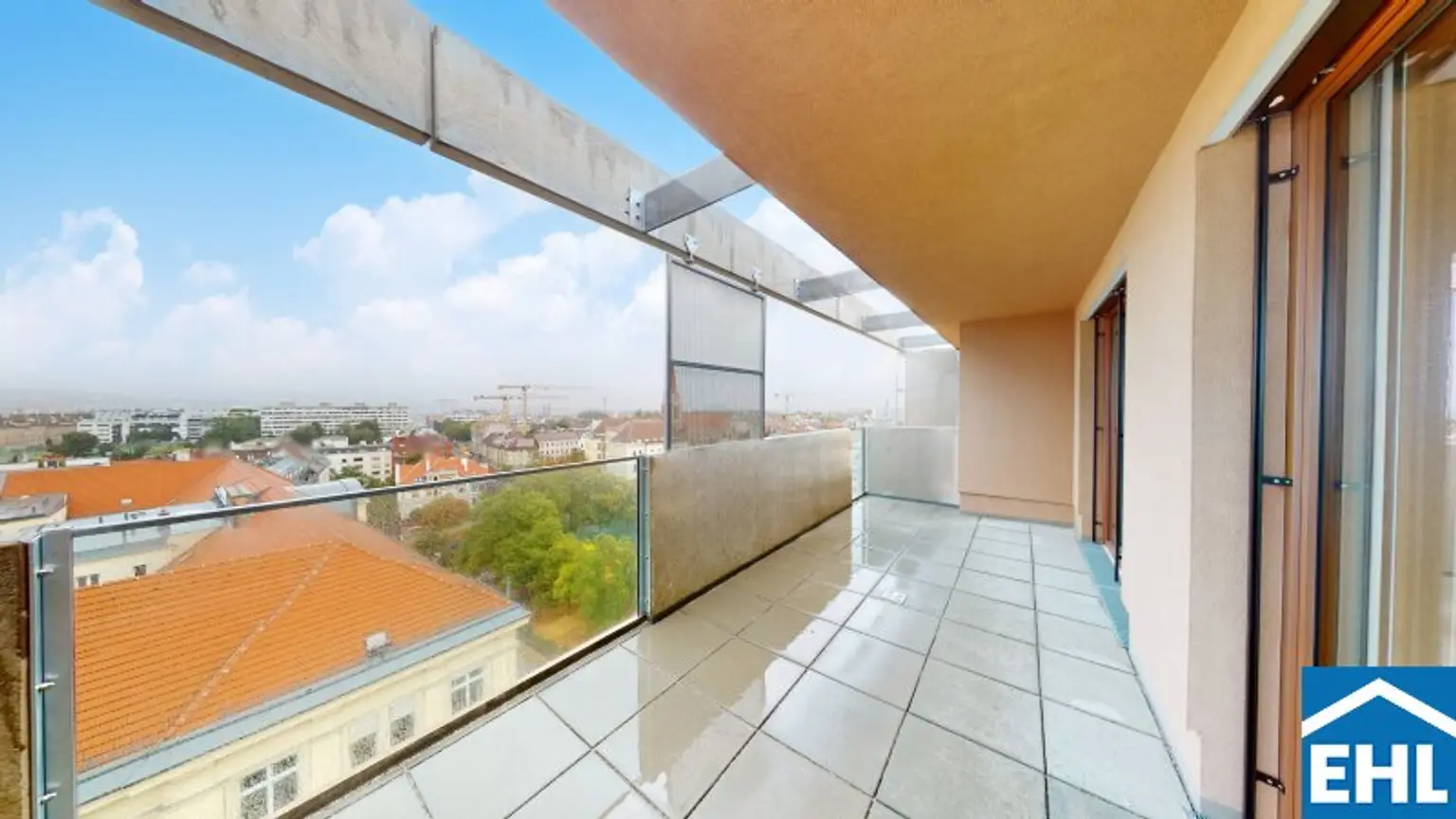 In der 10. Etage von Stiege 1 befindet sich die exklusive 4-Zimmer-Eigentumswohnung TOP 93 mit ca. 134 m² Wohnnutzfläche, einem umlaufenden Balkon von ca. 41 m² sowie einer zusätzlichen Terrasse mit ca. 14 m². Ein echtes Highlight ist der spektakuläre Weitblick – von der Otto-Wagner-Kirche bis zur Inneren Stadt Wiens. Diese Wohnung kombiniert Großzügigkeit, Ruhe und Panorama in einer Form, die in Wien ihresgleichen sucht.