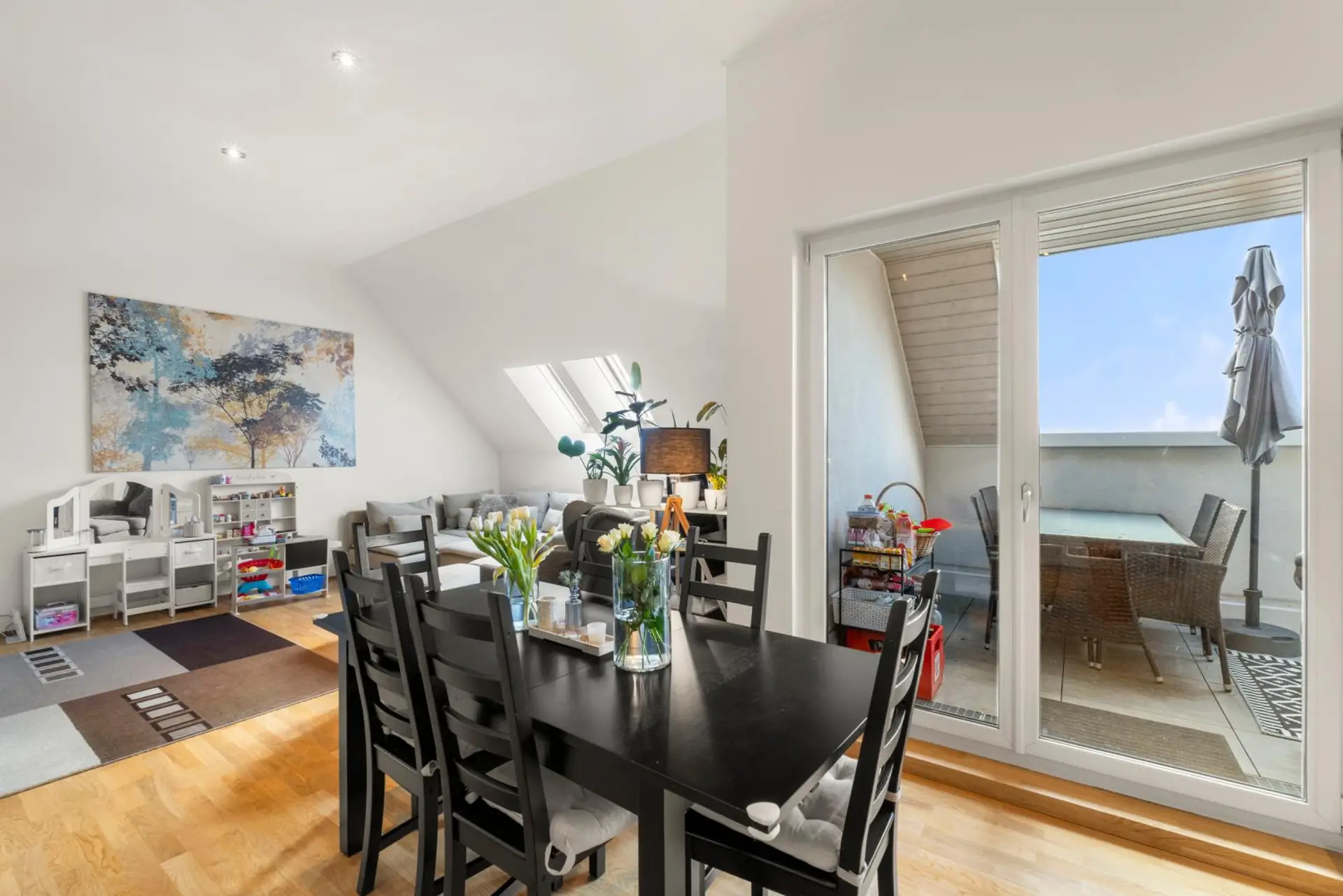 Diese Dachgeschosswohnung ist ideal für alle, die eine besondere Stadtwohnung mit Weitblick suchen – hell, hochwertig ausgestattet und mit außergewöhnlicher Raumgestaltung. Ein Zuhause mit Charme, moderner Technik und einer Aussicht, die ihresgleichen sucht.