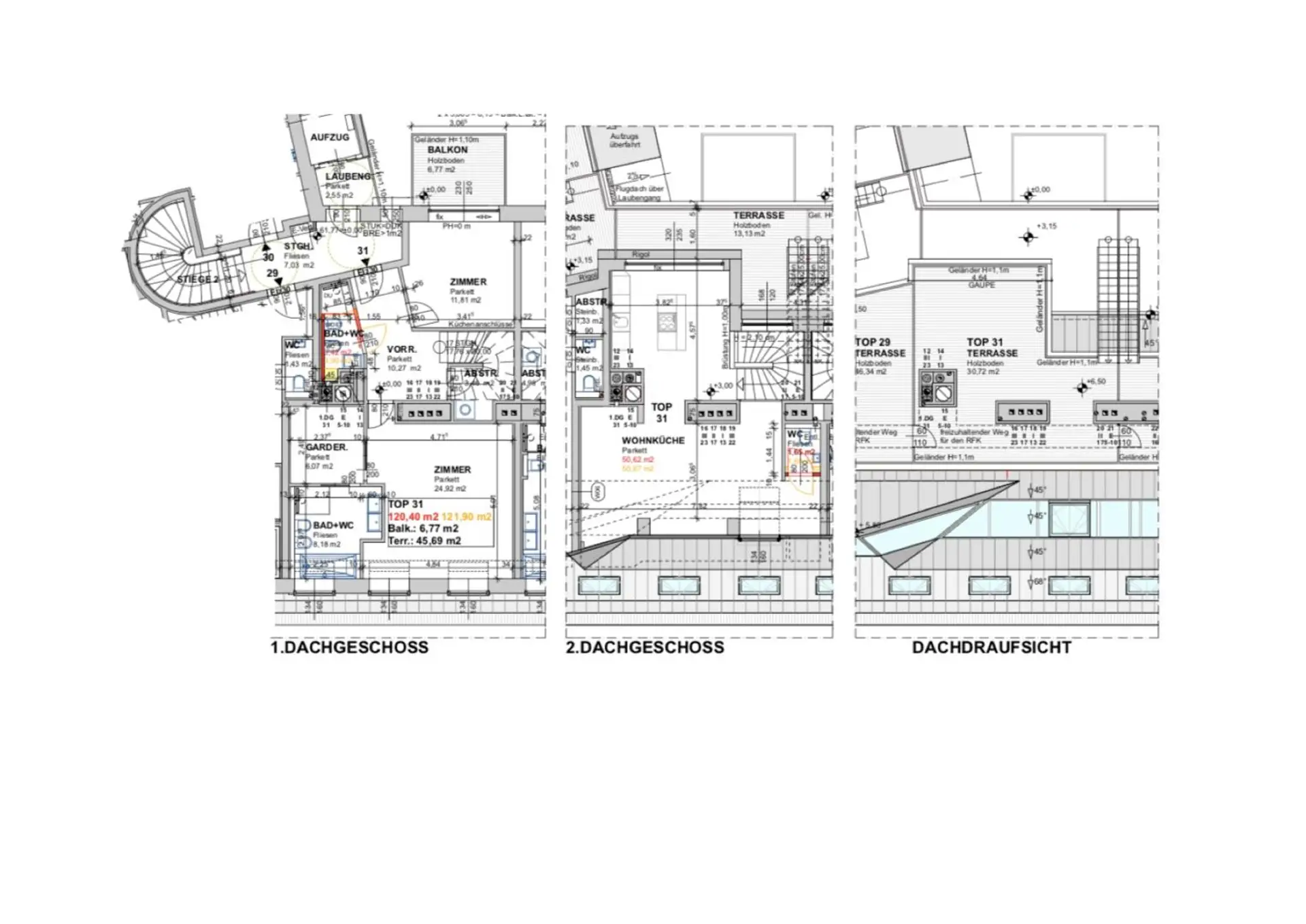 - Balkon, Terrasse, Dachterrasse - mit einer Gesamtfläche von insgesamt 53 m2