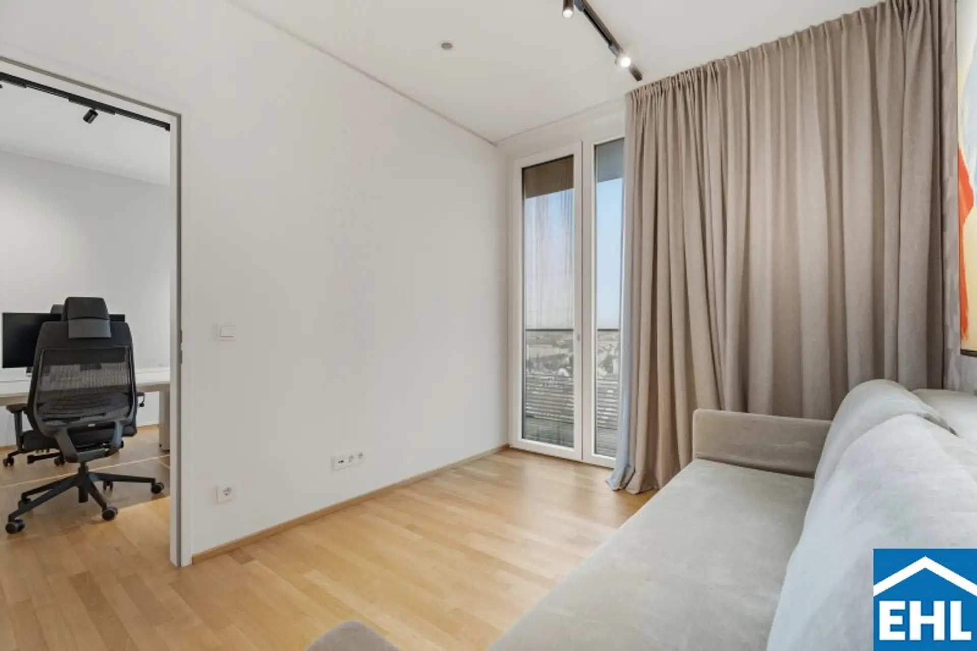 Mit ihrem Blick über den Grünen Prater verbindet sie urbanes Wohnen mit der beruhigenden Wirkung weiter Grünflächen. Die optische Leichtigkeit der Architektur, kombiniert mit der Offenheit der Räume, schafft ein Wohngefühl voller Weite und Eleganz. Auch hier sorgen große Fensterfronten und großzügige Außenflächen für ein beeindruckendes Zusammenspiel von Innen- und Außenraum.