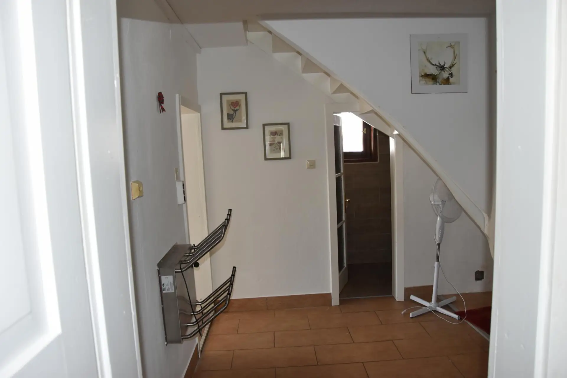 Elektroheizung in allen Räumen sowie ein alter Holzherd in der Küche. Trinkwasser aus Gemeindewasserleitung. Kein Kanalanschluss, dafür Senkgrube zum Entleeren.