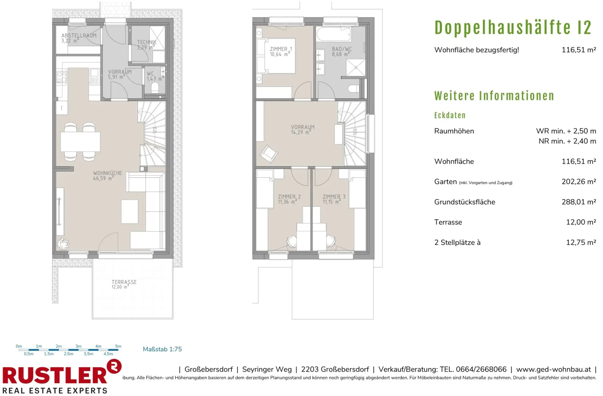 In Großebersdorf, nur wenige Kilometer von Wien entfernt, entsteht eine exklusive Wohnanlage mit 4 Einfamilienhäusern und 12 Doppelhaushälften in hochwertiger Holzmassivbauweise. Hier verbindet sich ländliche Idylle mit perfekter Stadtnähe – ideal für Familien und alle, die Ruhe im Grünen genießen möchten, ohne auf urbane Annehmlichkeiten zu verzichten. Die Highlights im Überblick: + Wohnflächen von 111m² bis 141m² + Grundstücksgrößen von 249m² bis 443m² + Gartenflächen von 136m² bis 307m² + Niedrigstenergie-Bauweise, klimaaktiv-zertifiziert + Hochwertige Ausstattung: Parkettböden, edle Keramik, elegante Holztreppen + Moderne Haustechnik mit Fußbodenheizung & Kühlfunktion, Luftwärmepumpe und kontrollierter Wohnraumlüftung + Südseitig ausgerichtete Terrassen und großzügige Gärten inkl. Gerätehaus (Biohort®) + 2 Stellplätze pro Haus + Schlüsselfertig zum Fixpreis – Bezug 4. Quartal 2026 Die Marktgemeinde Großebersdorf überzeugt mit idyllischen Weingärten, Kellergassen und zahlreichen Freizeitmöglichkeiten. Kindergarten, Volksschule, Nahversorgung und Sportstätten sind fußläufig erreichbar. Über den Knoten Eibesbrunn besteht eine perfekte Anbindung ans Straßennetz, die Wiener Innenstadt ist mit der S-Bahn in rund 30 Minuten erreichbar. Ihr Vorteil + Neubau & Erstbezug + Nachhaltiges Wohnkonzept mit höchster Energieeffizienz (fGEE A++) + Kostensparend im Betrieb dank innovativer Bauweise + Fixpreise und transparente Abwicklung + Provisionsfrei