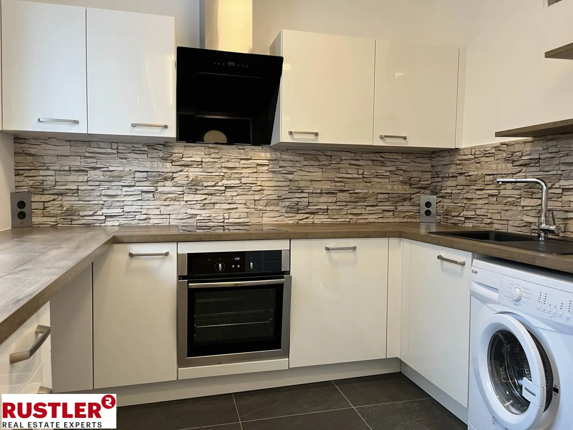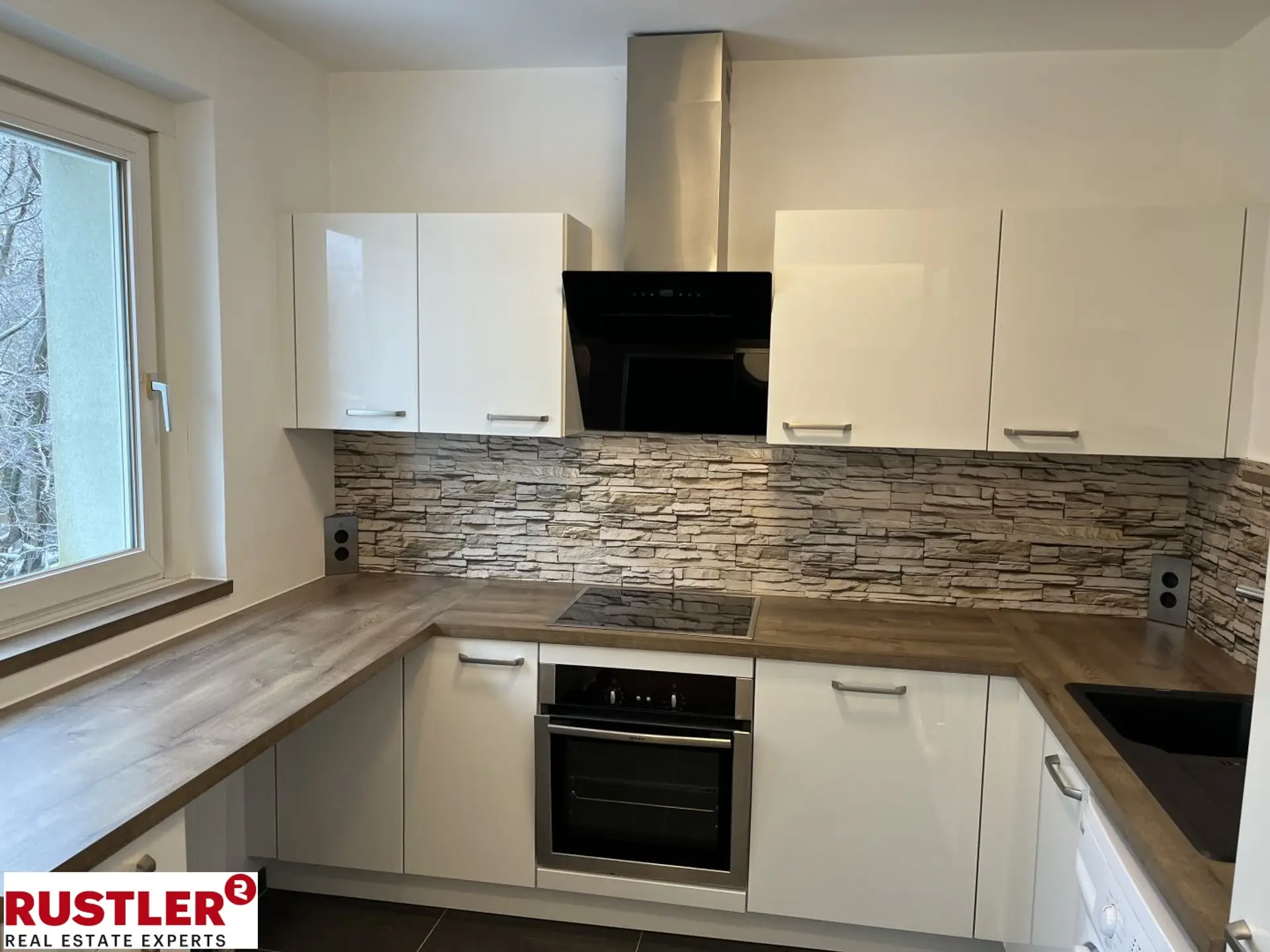 Ebenfalls vom Vorraum begehbar ist das Wohn-Esszimmer, mit direktem Ausgang auf den nord-westseitig ausgerichteten Balkon sowie die moderne, voll ausgestattete Küche.