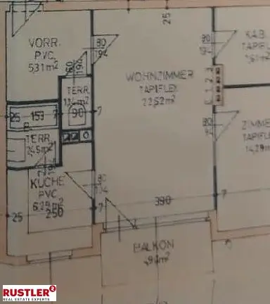 Ebenfalls vom Vorraum begehbar ist das helle Wohn-Esszimmer, mit direktem Ausgang auf den südseitig ausgerichteten Balkon und neuer, voll ausgestatteter Küche.