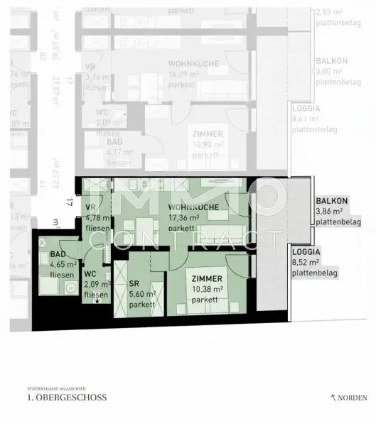 Alle Einheiten werden schlüsselfertig übergeben — Sanitärinstallationen, Fliesen und Parkett sind im Kaufpreis enthalten. Genauere Angaben zur Ausstattung entnehmen Sie bitte der Leistungsbeschreibung im Booklet.