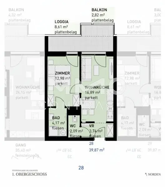 Alle Einheiten werden schlüsselfertig übergeben — Sanitärinstallationen, Fliesen und Parkett sind im Kaufpreis enthalten. Genauere Angaben zur Ausstattung entnehmen Sie bitte der Leistungsbeschreibung im Booklet.