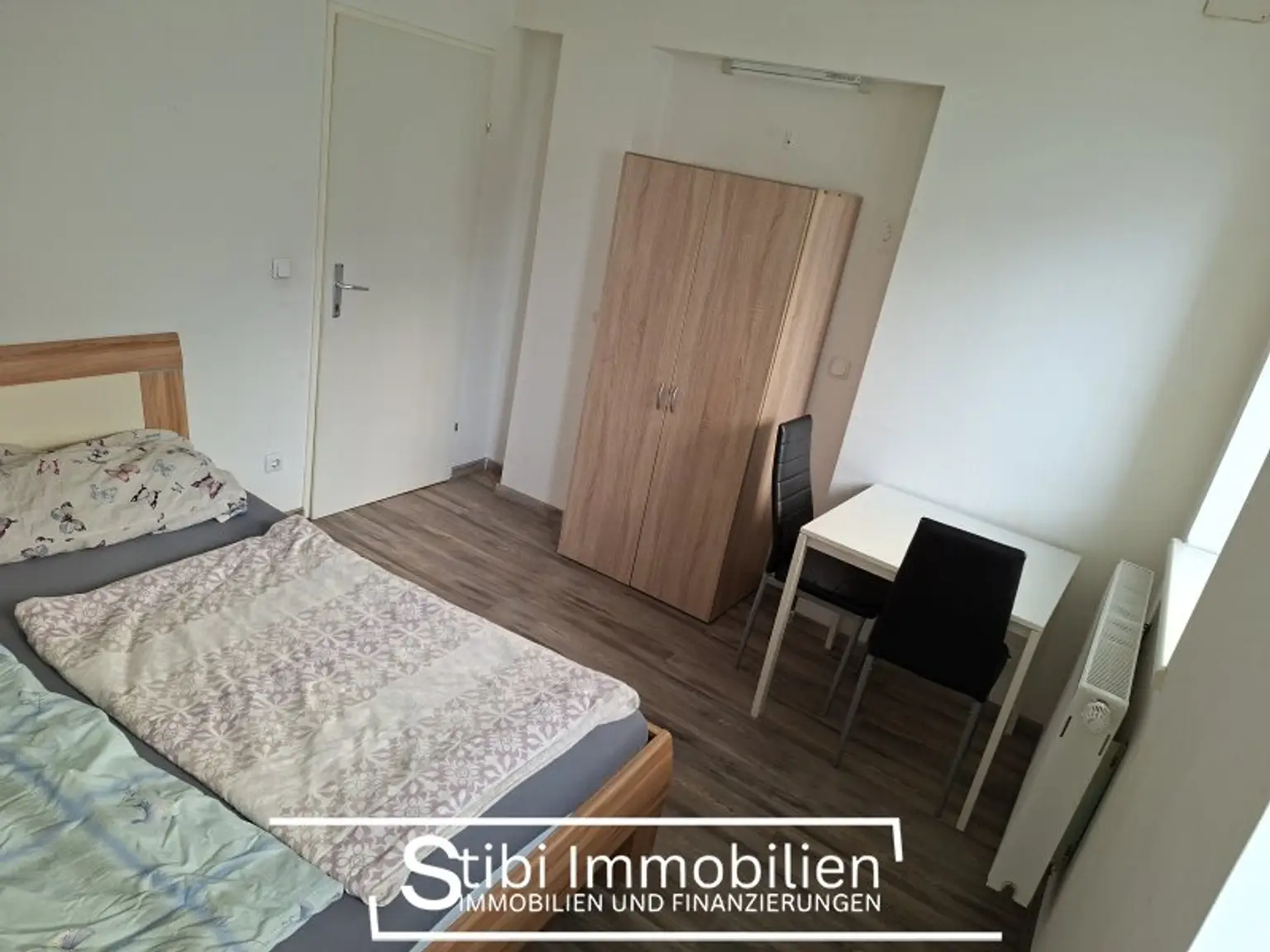 DAS ZIMMER IST VOLL MÖBLIERT (BETT, SCHRANK, TISCH, MATRATZE UND POLSTER) – KOFFER PACKEN UND EINZIEHEN.