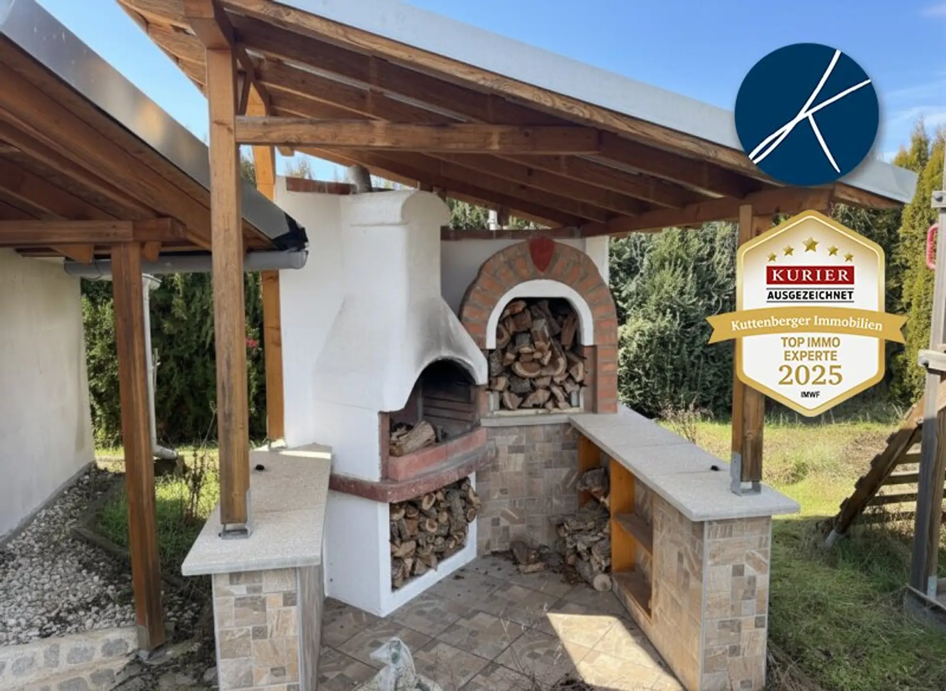 Die Liegenschaft überzeugt durch einen großzügigen Garten auf Bauland und mehrere Nebengebäude, die vielfältige Nutzungsmöglichkeiten bieten. Ein Nebengebäude ist mit einer voll ausgestatteten Küche versehen, ein weiteres steht flexibel zur Verfügung. Für Fahrzeuge stehen drei Garagenstellplätze bereit – einer direkt bei der vorderen Einfahrt, zwei weitere in einem separaten Nebengebäude. Zusätzlich lädt eine eigene Grillstelle zu gemütlichen Stunden im Freien ein.
