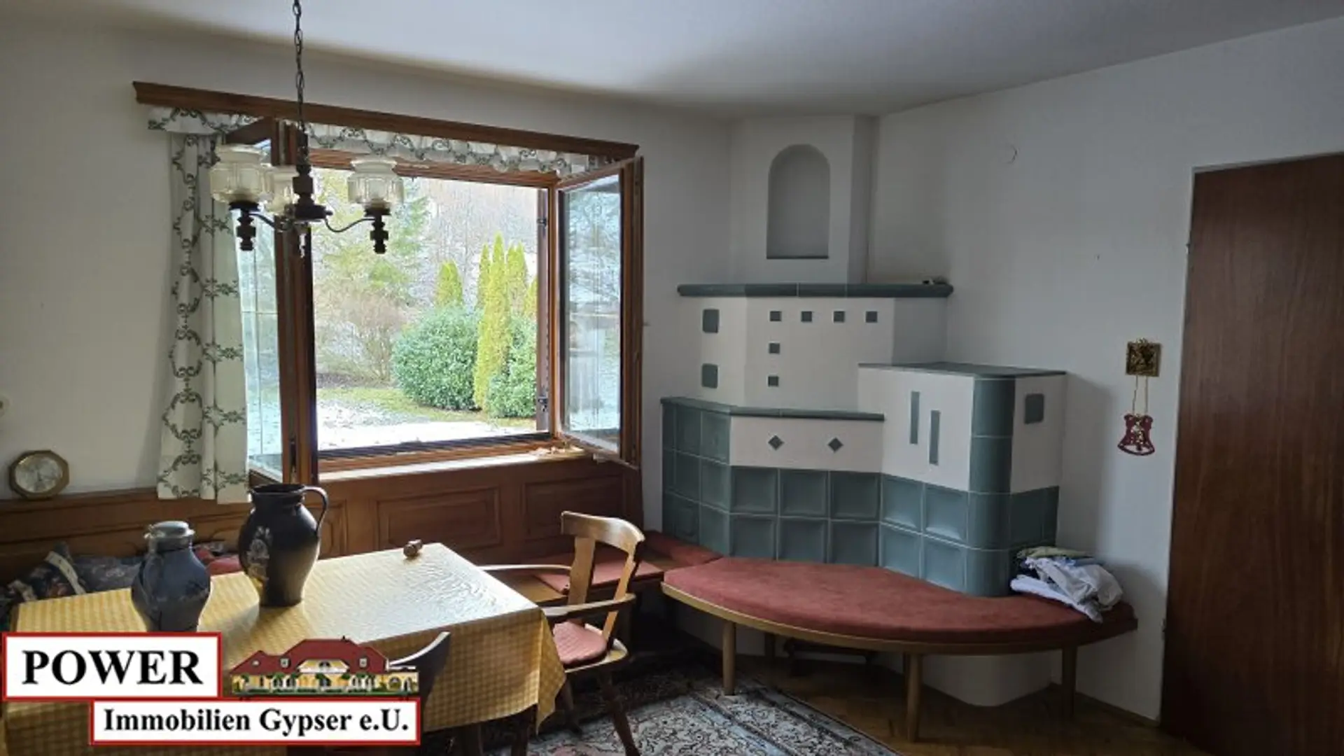 Ein Kachelofen befindet sich im Wohnraum, um die wohlige Wärme im Haus zu genießen und auch Heizkosten zu sparen.