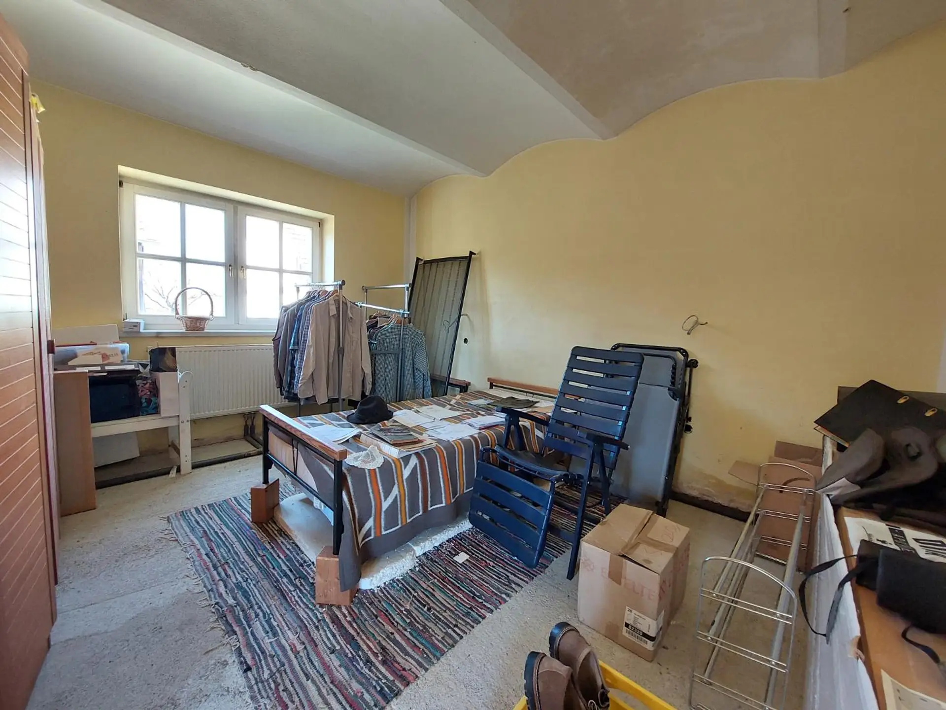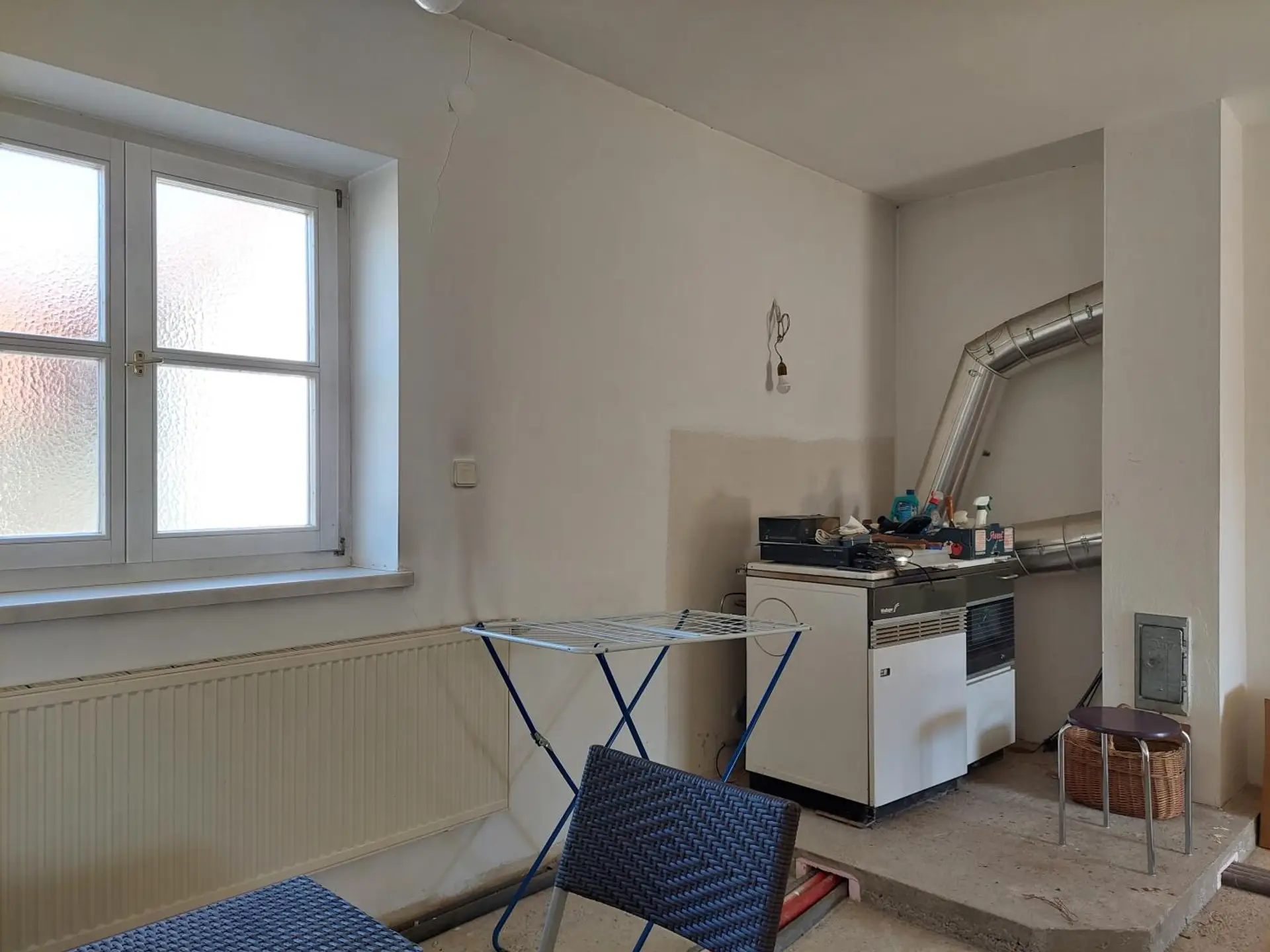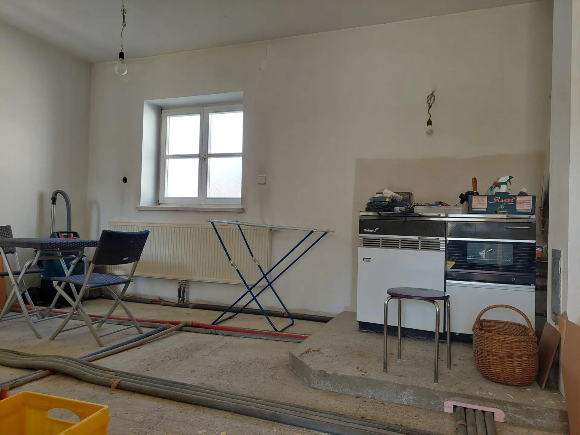 Die ebenerdige Wohnfläche von ca. 135 m² bietet ein angenehmes Raumgefühl mit hohen Decken und teilweise ausgeführten Gewölbedecken, die dem Haus eine besondere architektonische Note verleihen. Zur Verfügung stehen drei Zimmer sowie eine Wohnküche mit traditionellem Küchenherd. Der Vorraum ist großzügig gestaltet und durch seine Helligkeit ein einladender Mittelpunkt des Hauses.