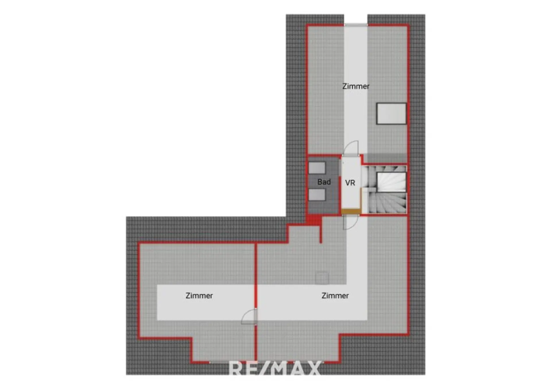 * Raumaufteilung OG: Vorraum, 3 Zimmer, Bad/WC