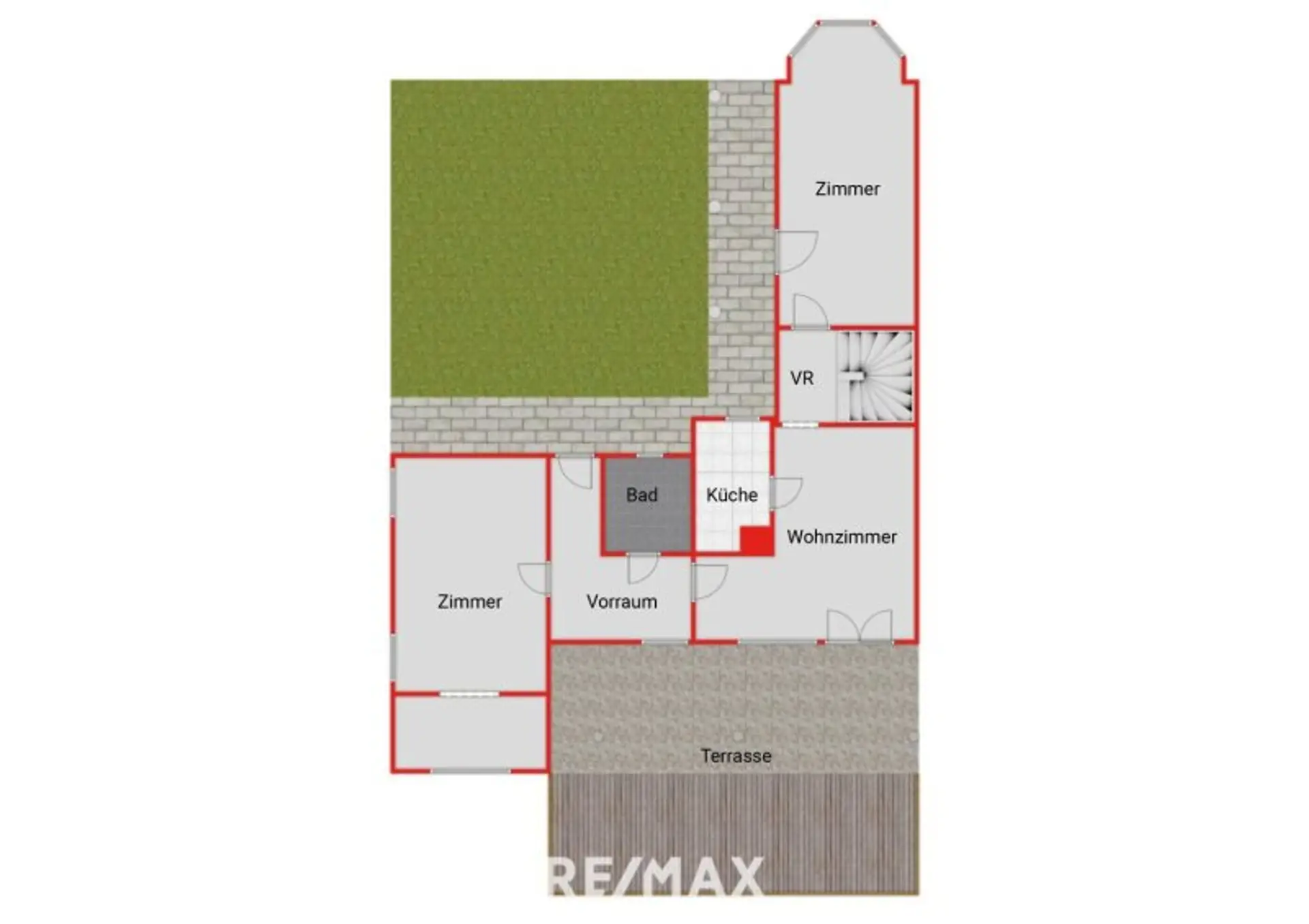 * Raumaufteilung EG: 2 Vorräume, 3 Zimmer, Küche, Bad/WC