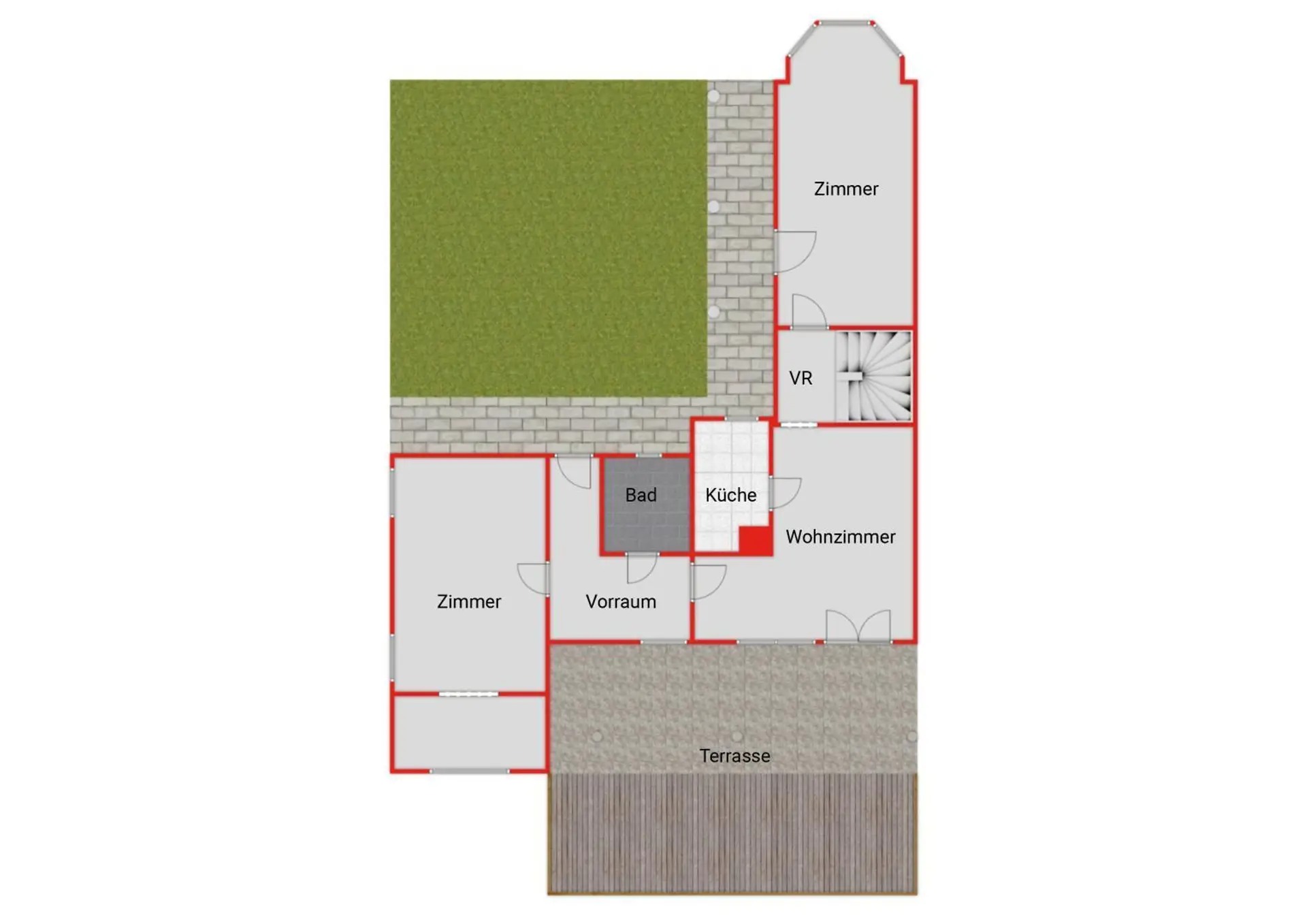 * Raumaufteilung EG: 2 Vorräume, 3 Zimmer, Küche, Bad/WC