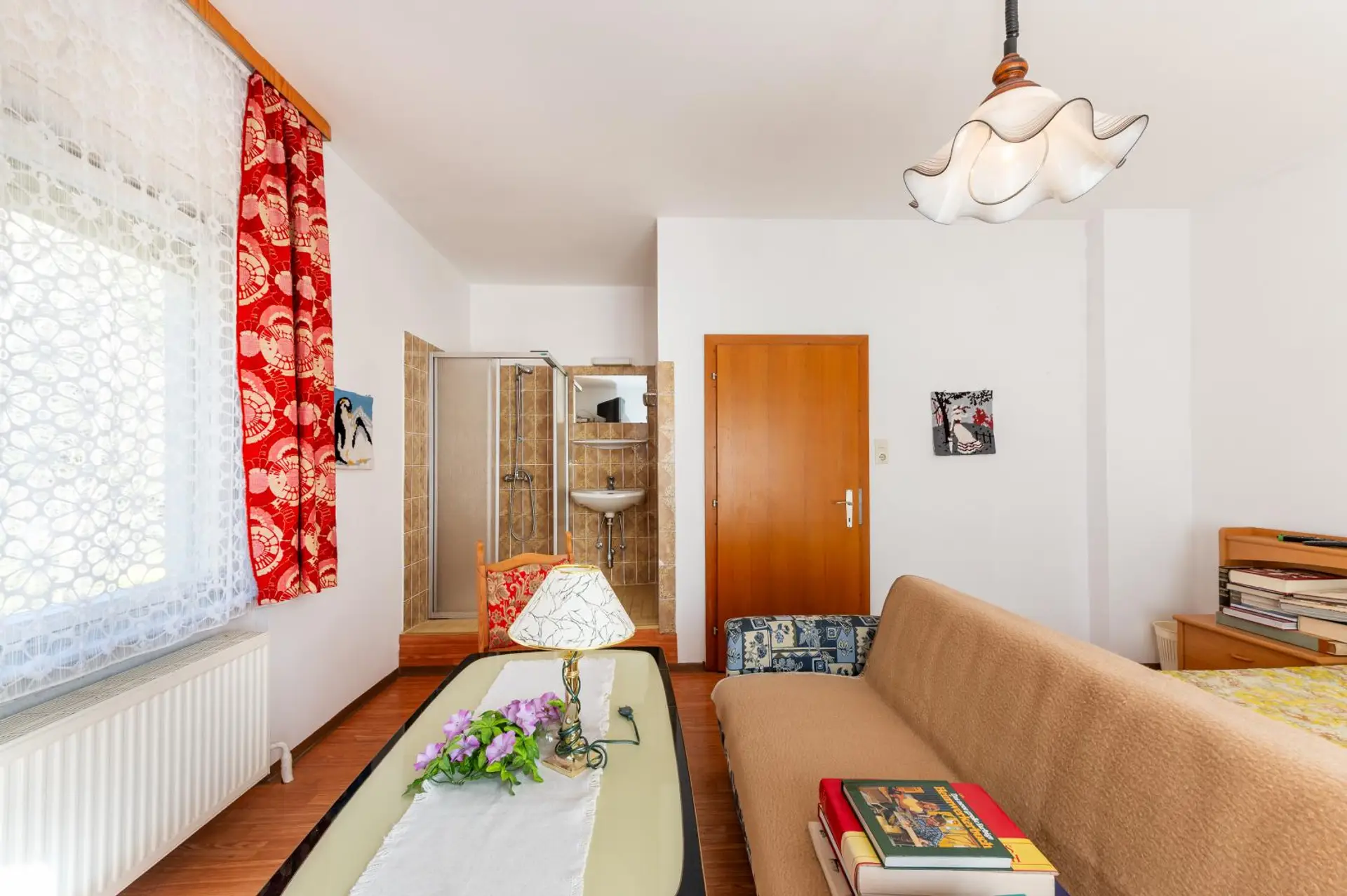 Auf einem ca. 4600 m² großen, ebenen Grundstück befinden sich hier ein Wohngebäude mit Frühstückspension, ein Wirtschaftsgebäude, ein großes Carport sowie kleinere Nebengebäude. Der östliche Teil der Liegenschaft mit Weingärten und Obstanlagen liegt derzeit brach.
