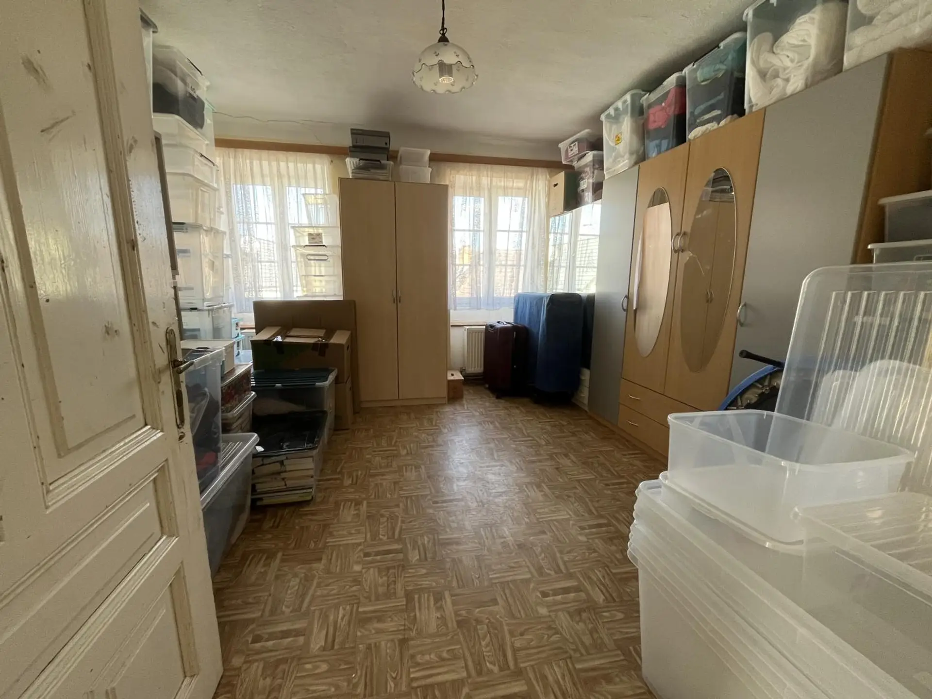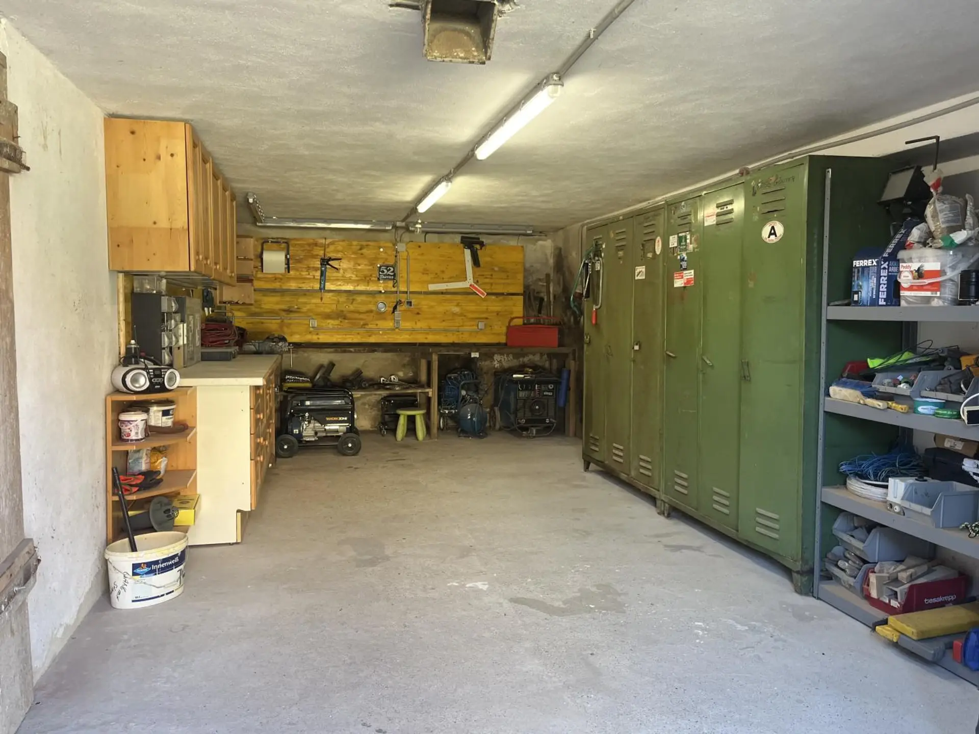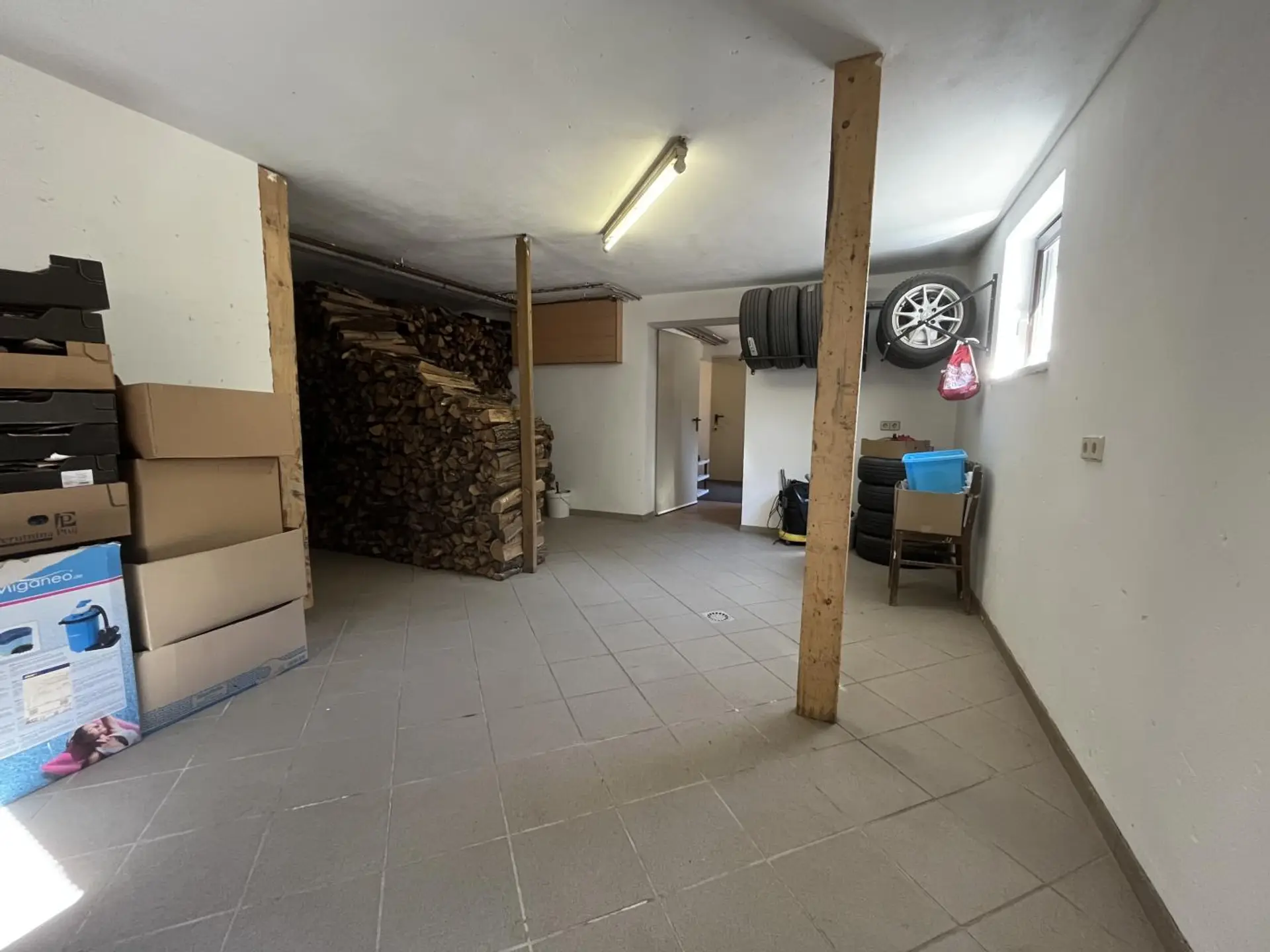 Im Zubau befinden sich drei Schlafzimmer, Wohnzimmer, Küche mit Essplatz, Bad, WC, Abstellraum und ein Wirtschaftsraum. Der Altbestand wurde nicht gänzlich adaptiert, kann aber zu einer eigenen Wohneinheit ausgebaut werden. Geheizt wir das Objekt mittels einer Zentralheizung mit festen Brennstoffen im Keller. Der Keller hat eine Größe von 47 m² und hierdurch ist auch die Doppelgarage mit zwei elektrischen Toren erreichbar. Es sind 2 Brunnen vorhanden welche als Trinkwasser und zum Bewässern genutzt werden.