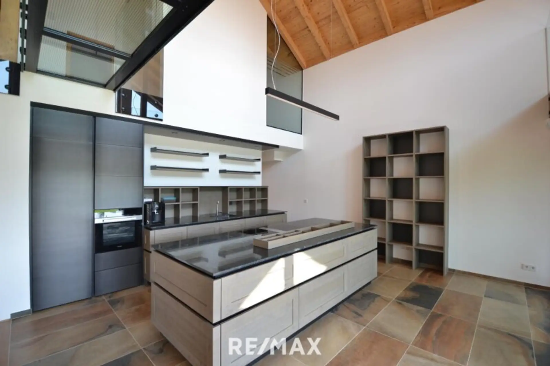 * elegant gestaltete Küche samt hochwertigen Elektrogeeräten