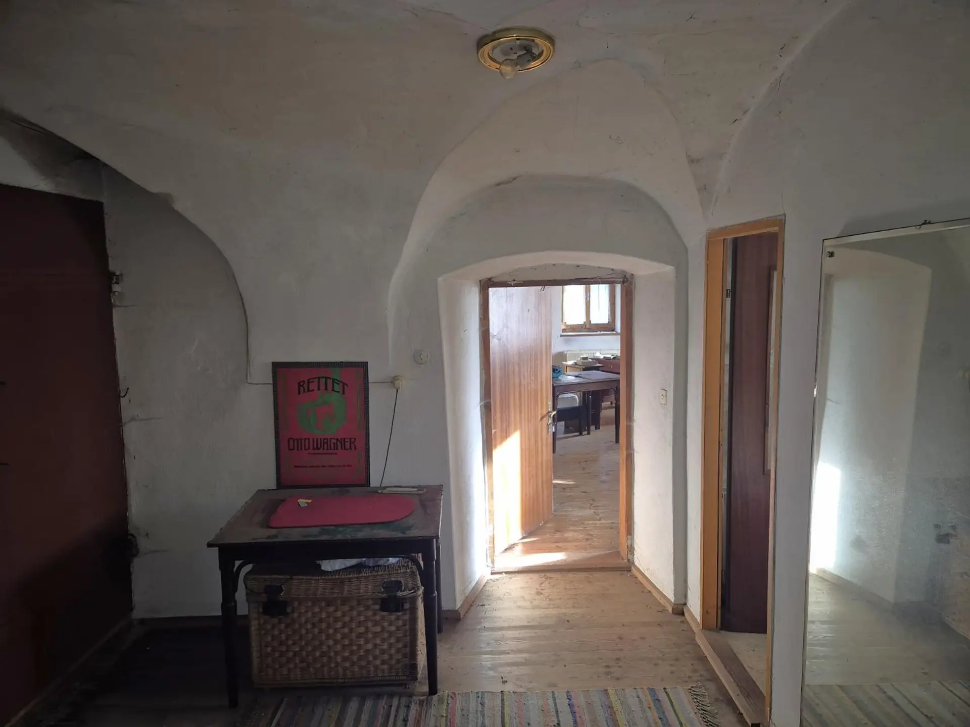 Hervorzuheben sind die uralten Tramdecken. Beheizung durch Holz-Zentralheizung und Solaranlage.