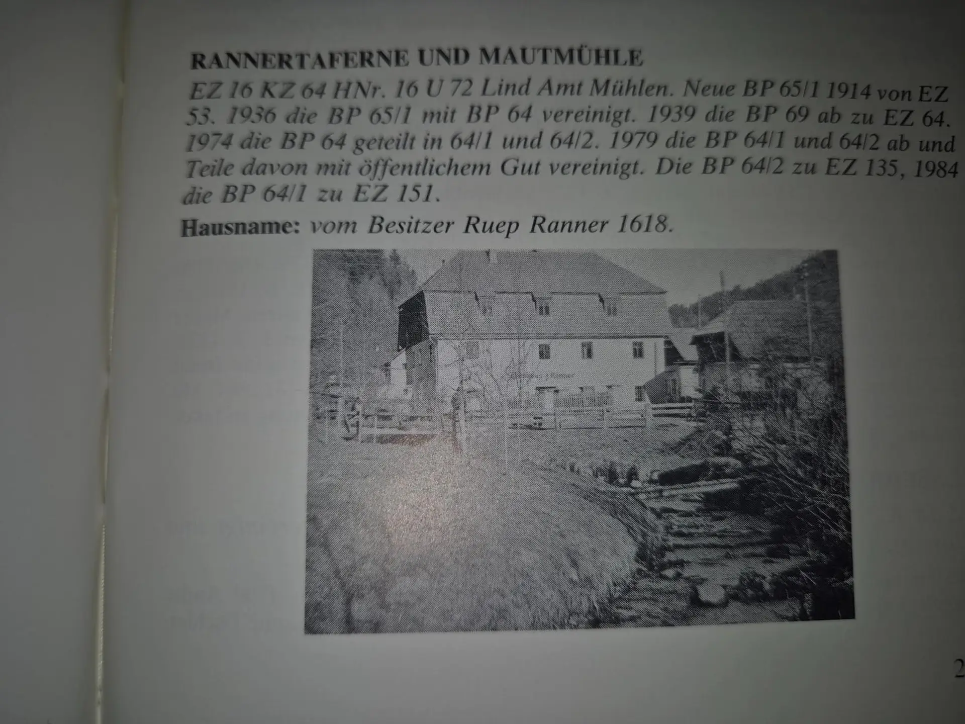 Die "Rannertaferne und Mautmühle wurde lt. Mühlner Chronik bereits 1618 urkundlich erwähnt.