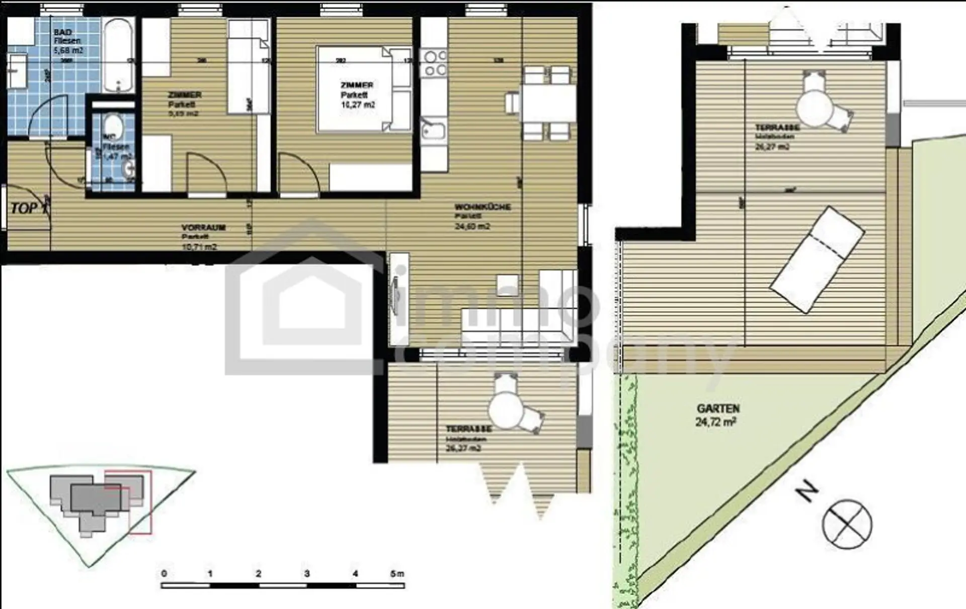 Ca. 64 m² Wnfl., ca. 30 m² Terrasse, Kleingarten