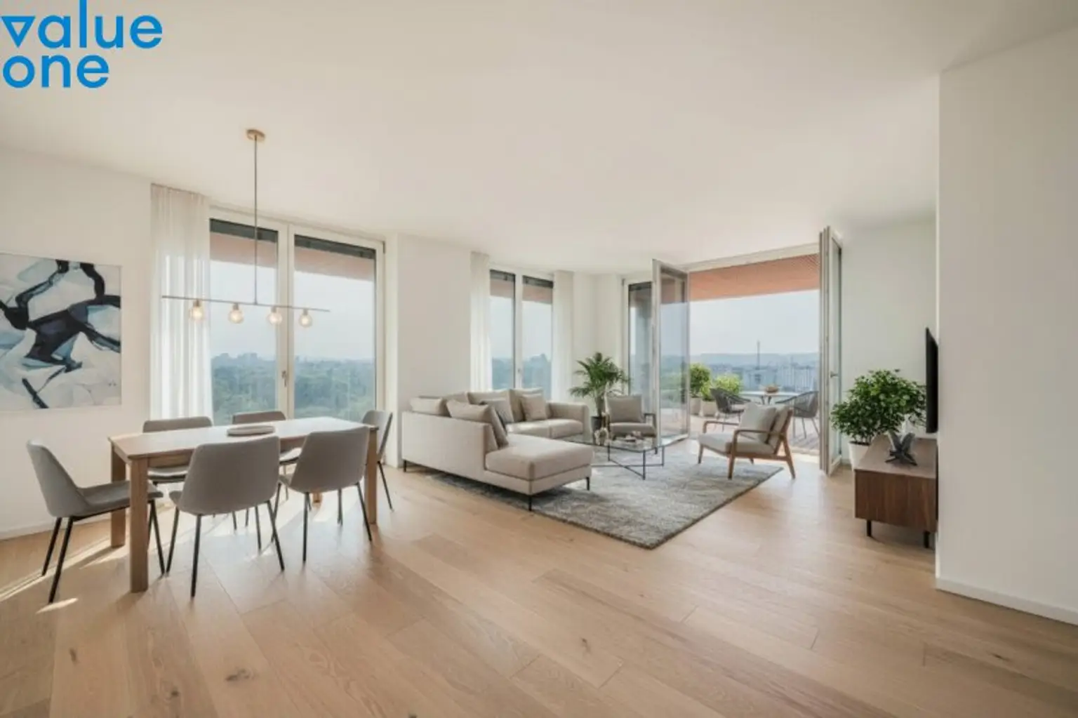 * Dining Area und großzügige Terrassenflächen mit Wienblick