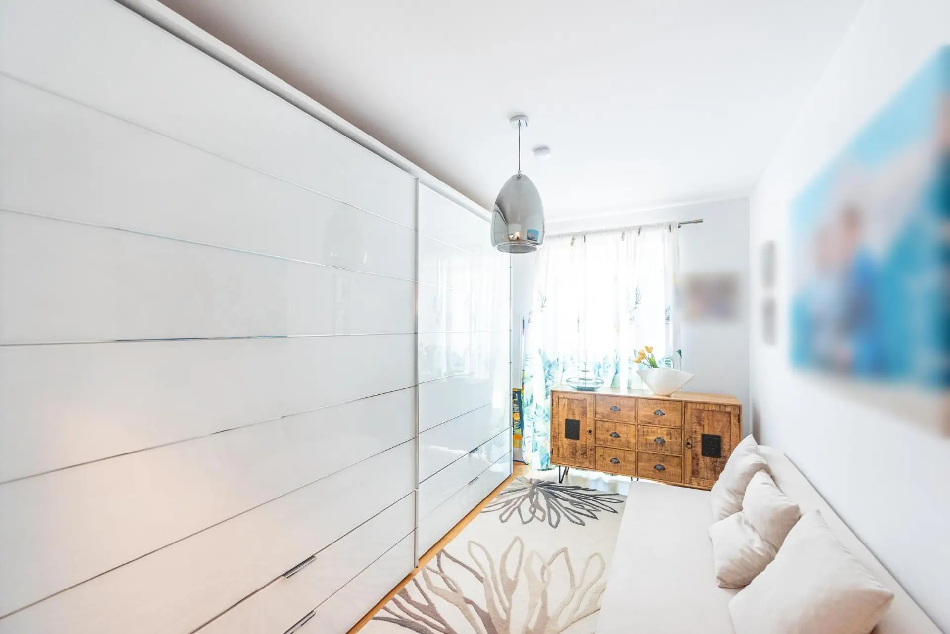 Der großzügige Wohnbereich bietet ausreichend Platz für eine stilvolle Couch, einen gemütlichen Essbereich und eine große Küche. Die hochwertige HAKA-Küche mit Bora-Kochfeld ist ein echtes Highlight für Kochbegeisterte.