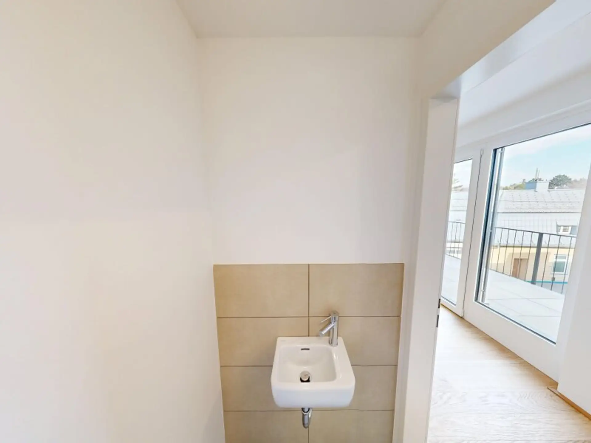 Willkommen über den Dächern von Rodaun. Direkt beim Eingangsbereich finden Sie das WC, sowie eine ideal geschnittene Fläche für eine Garderobe.