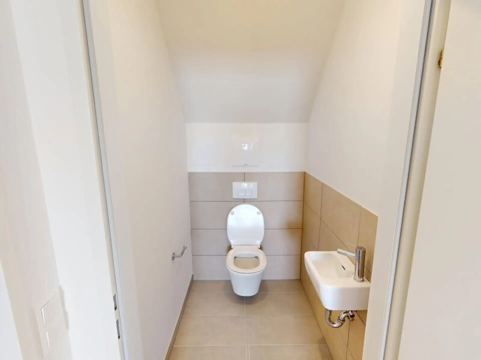 Direkt beim Eingang befinden sich WC und das separate Bad, praktisch gelegen, wenn Sie schnell noch ins Bad möchten, bevor Sie das Haus verlassen.